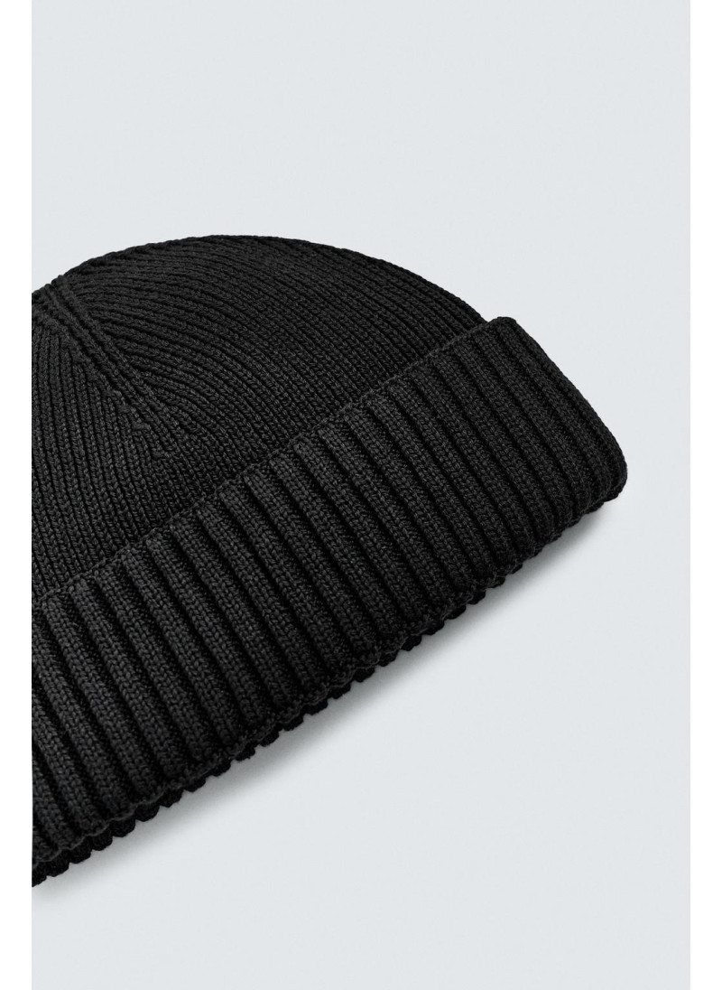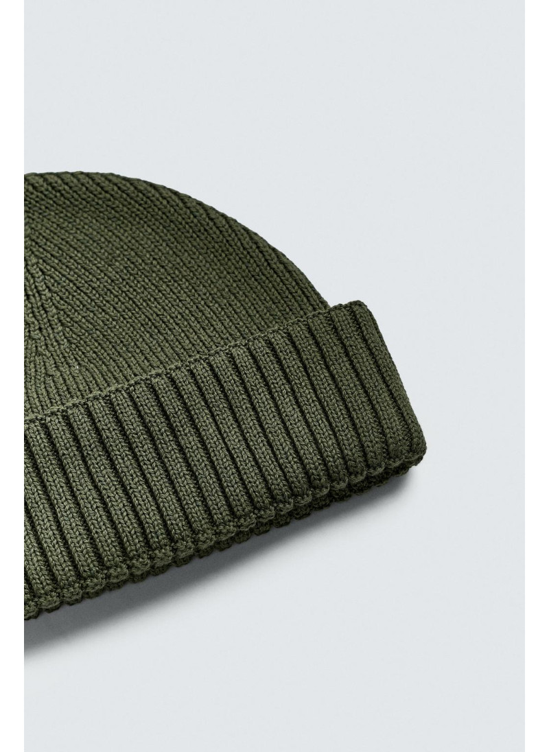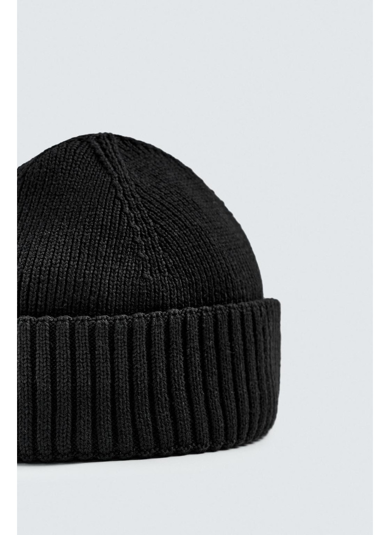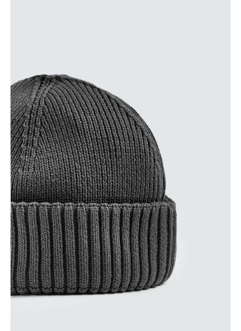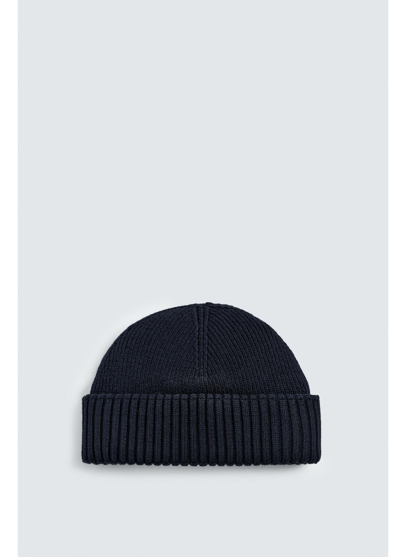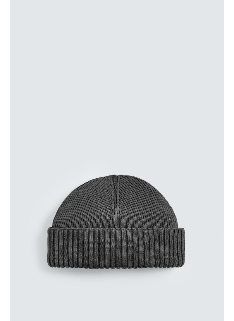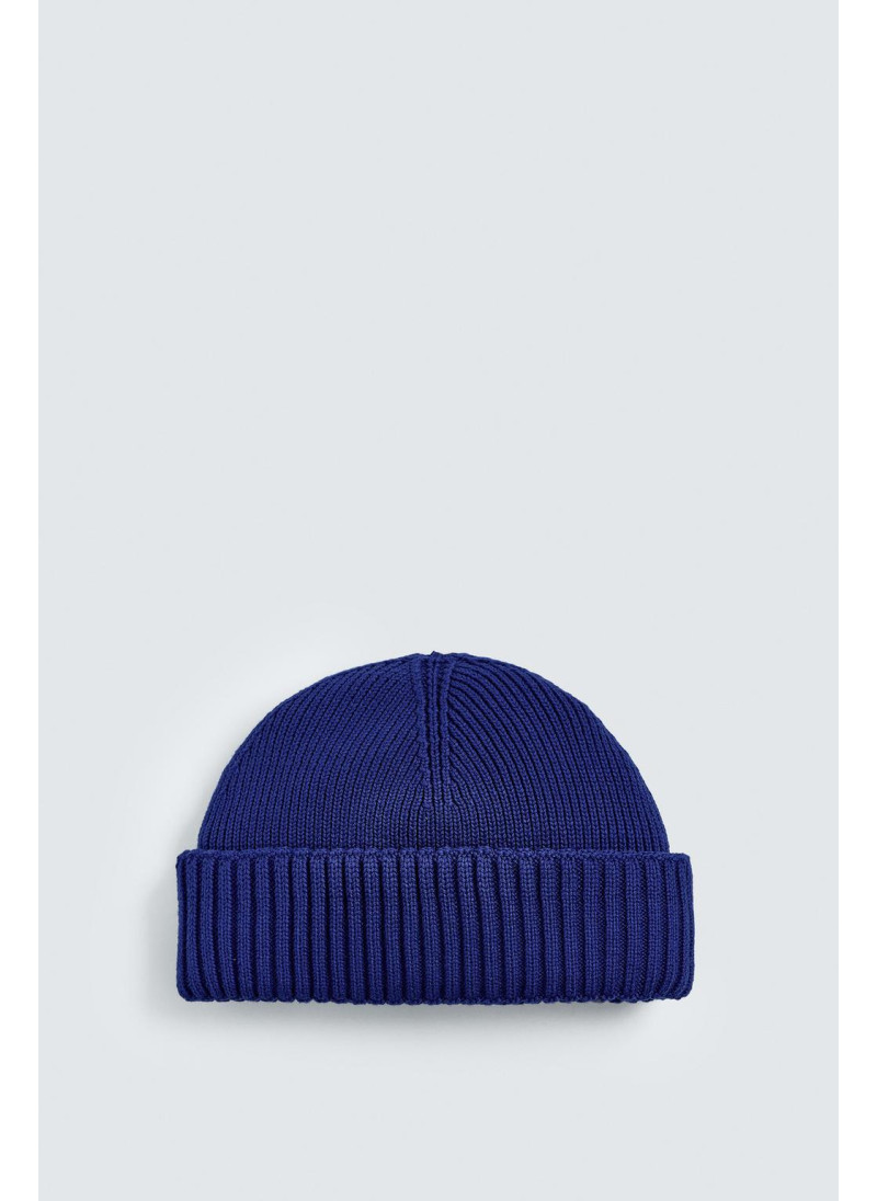 Короткая вязаная шапка из хлопковой смесовой пряжи. С отворотом...