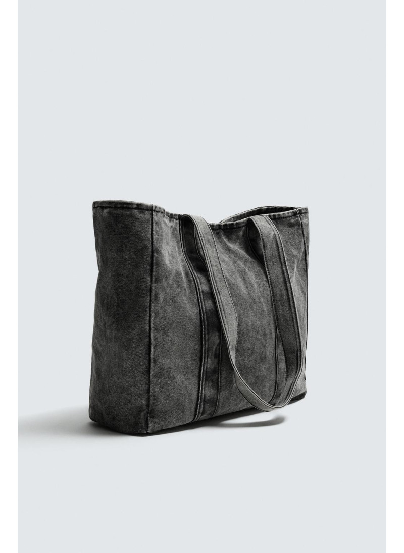 Универсальная сумка из черного денима с эффектом потертости. Идеально подойдет для повседневного использования. Размеры: 33 x 9 x 72 см.