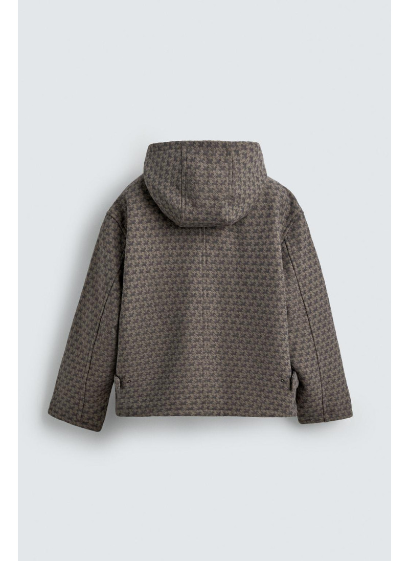 Куртка свободного кроя из войлочной ткани с 13% шерсти. Капюшон и длинные рукава. Двойные прорезные карманы на бедрах и внутренний карман. Застежка-молния.