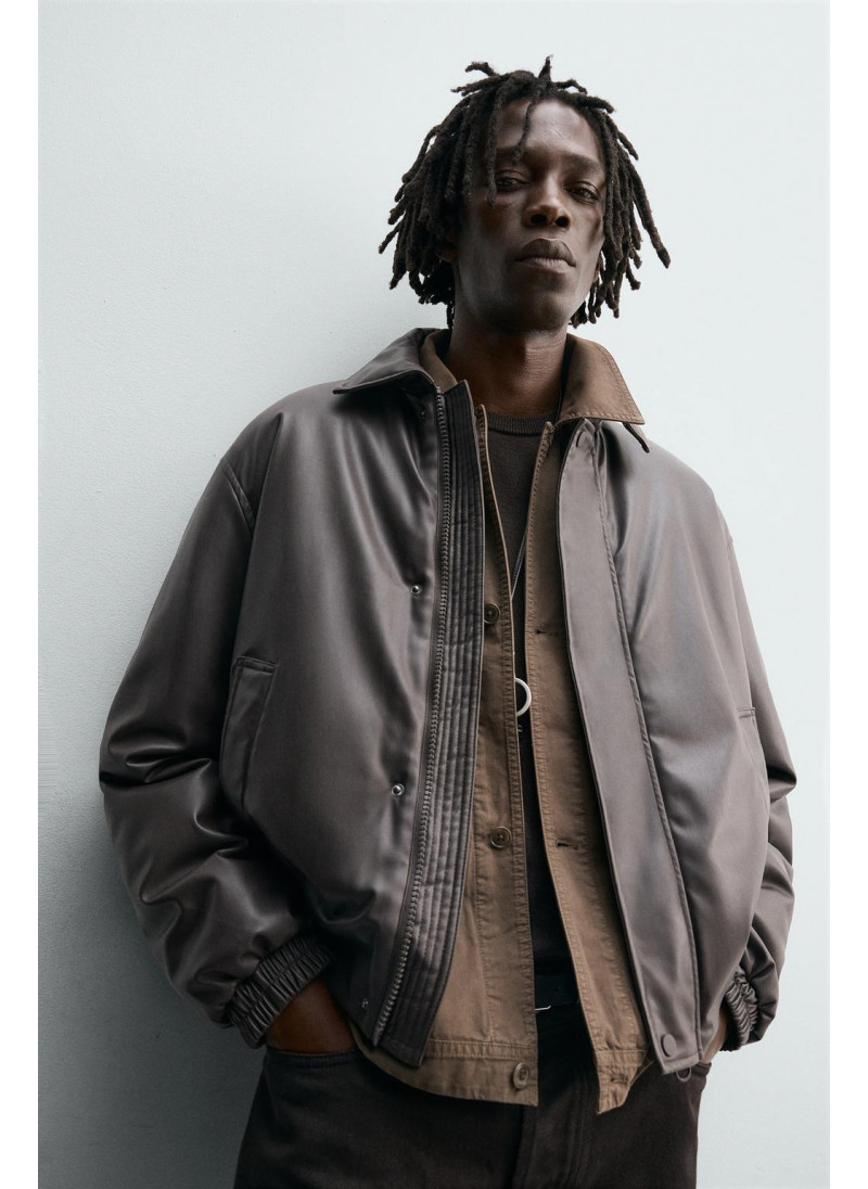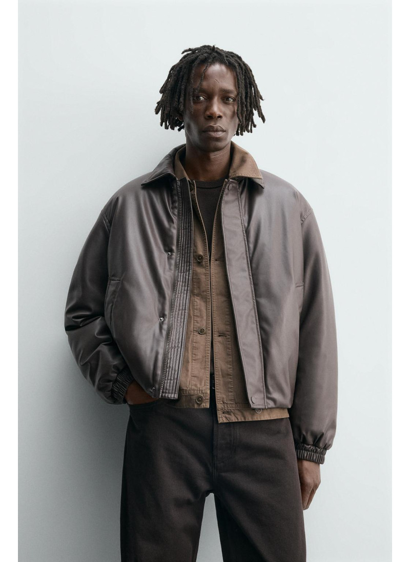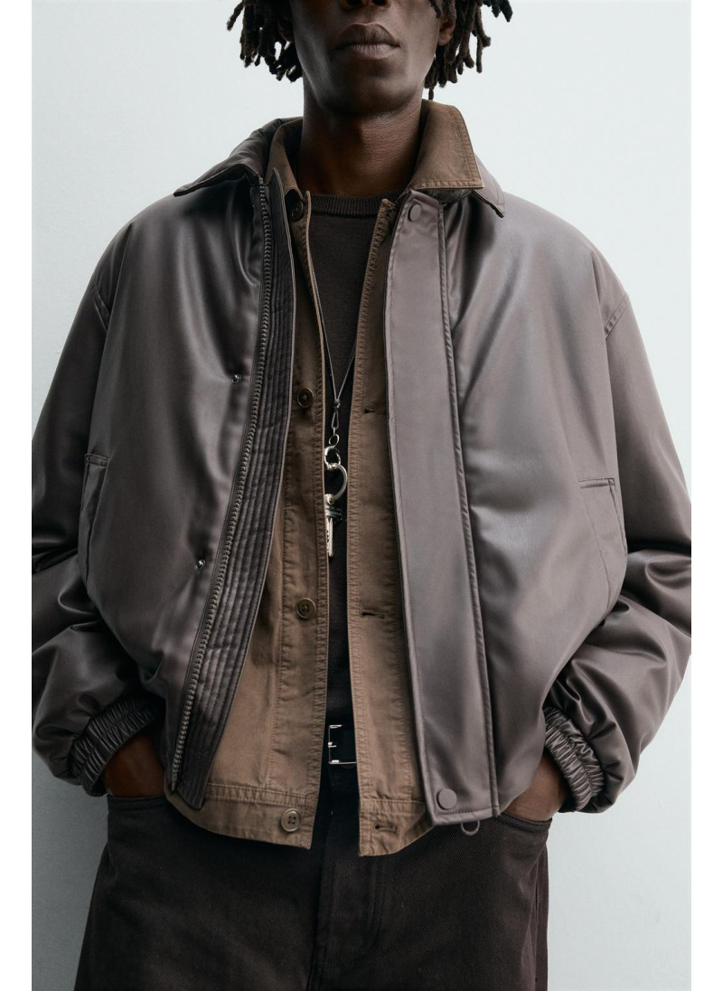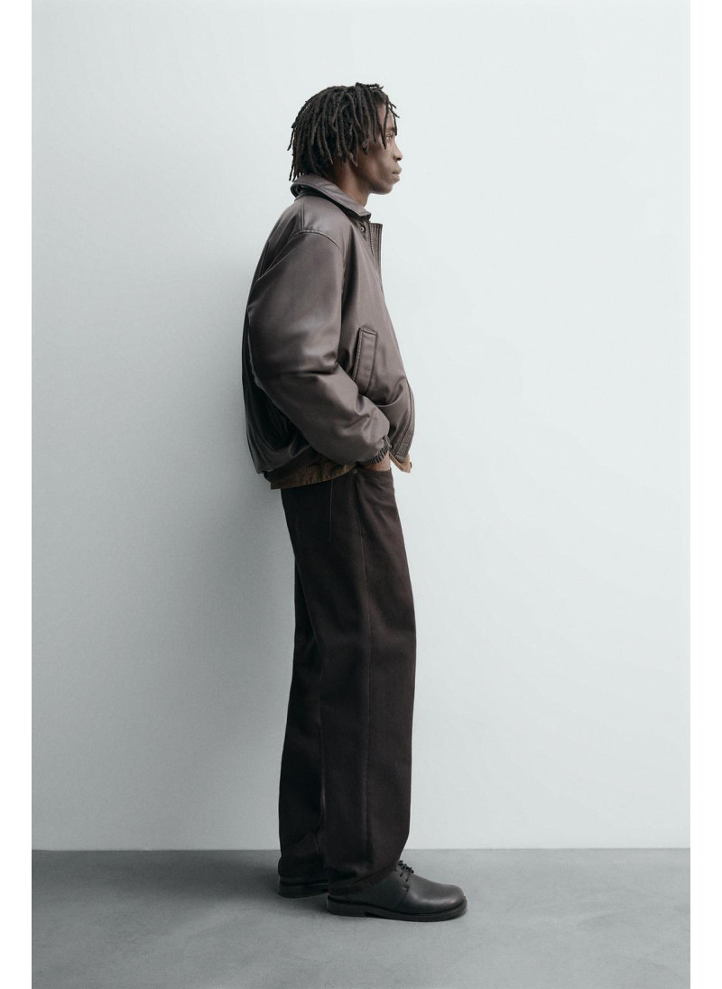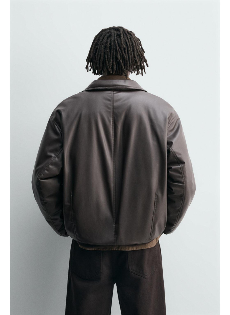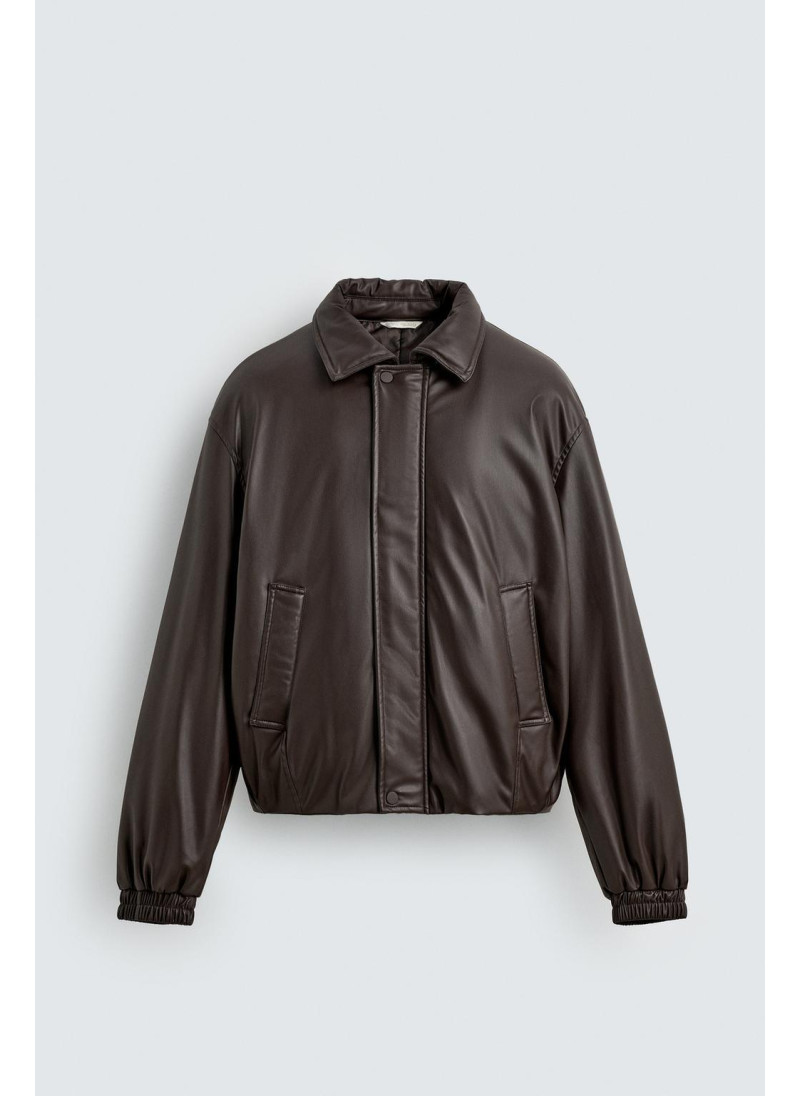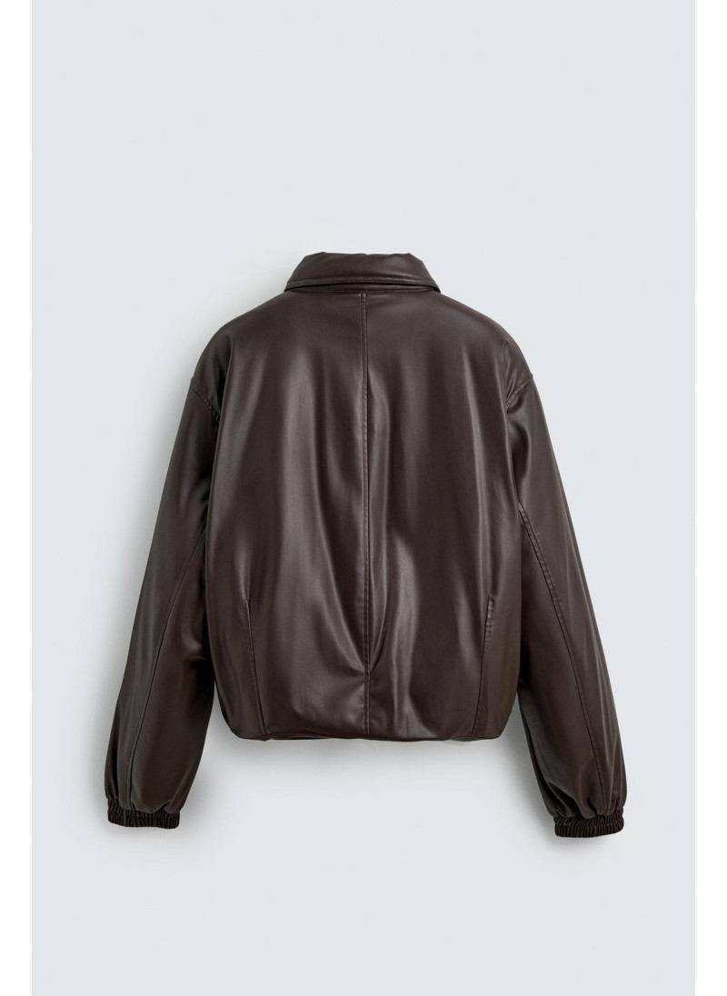 Эта стильная куртка свободного кроя выполнена из искусственной кожи темно-коричневого цвета. Идеальный вариант для создания ультрамодного образа в стиле Zara...