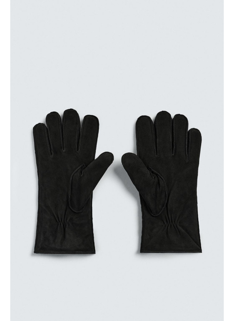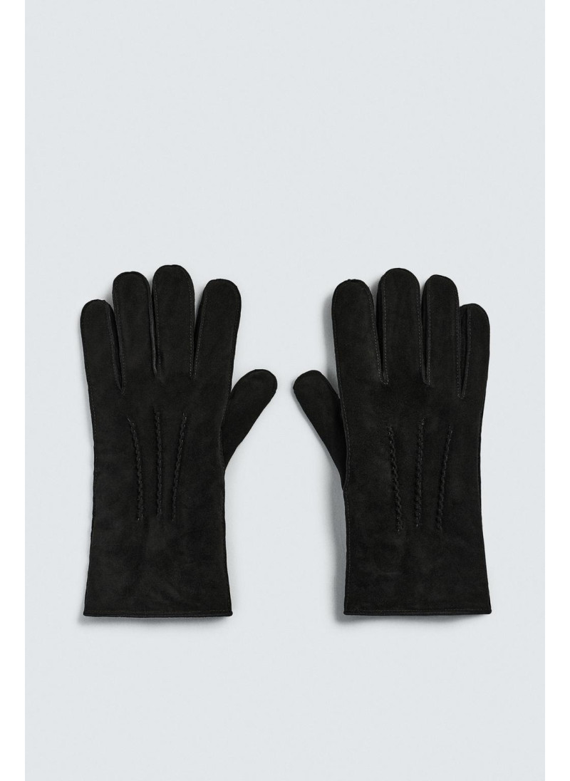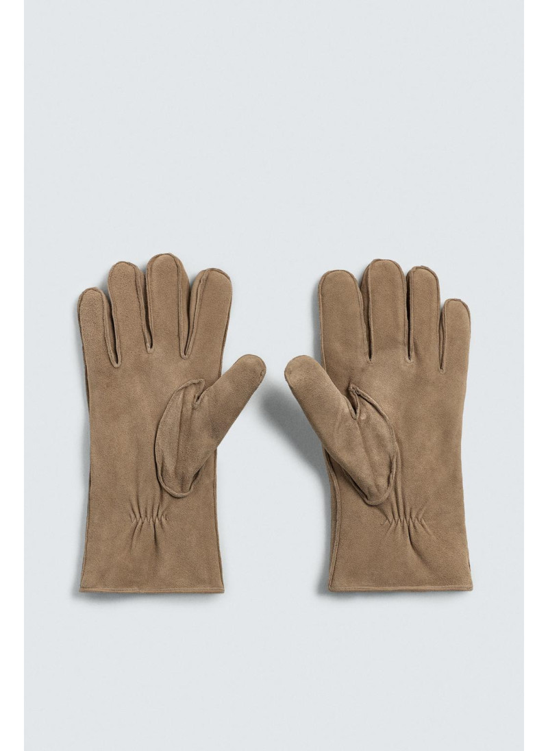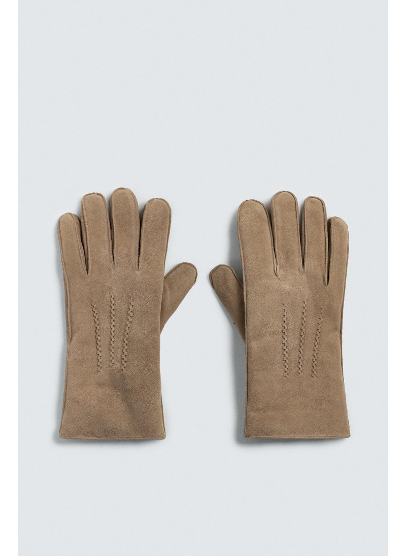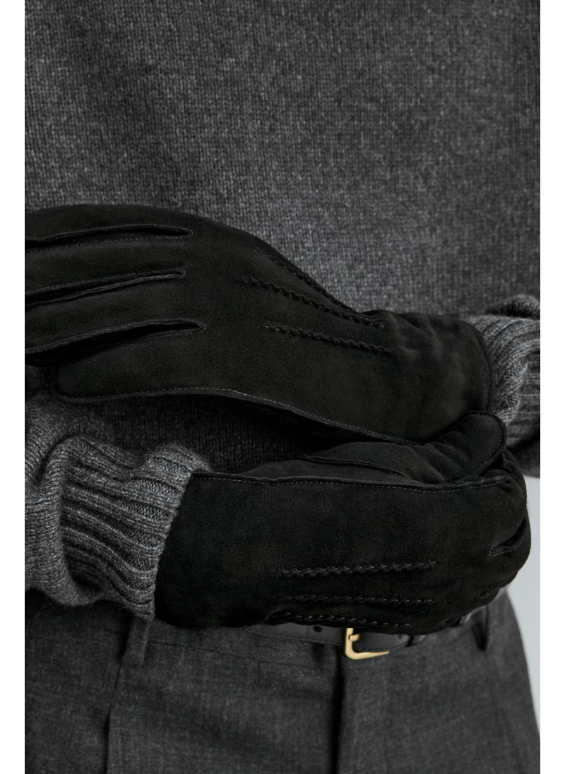 Кожаные перчатки с замшевой отделкой. Детали стежки на спинке. Внутренняя часть подкладки выполнена из контрастной искусственной овчины. Эластичные манжеты.