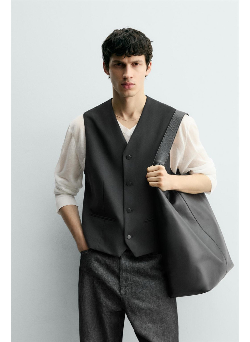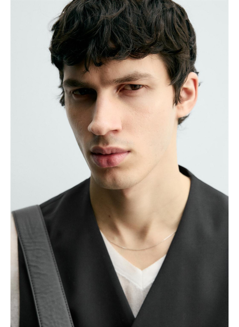 Жилет с регулярной посадкой из смесовой шерстяной ткани. Имеет V-образный вырез, проймы и два накладных кармана. Застегивается спереди на пуговицы...