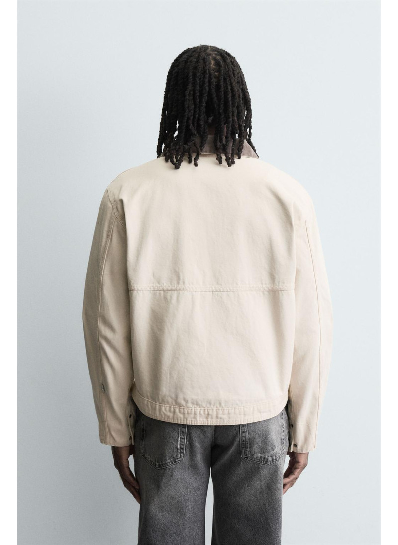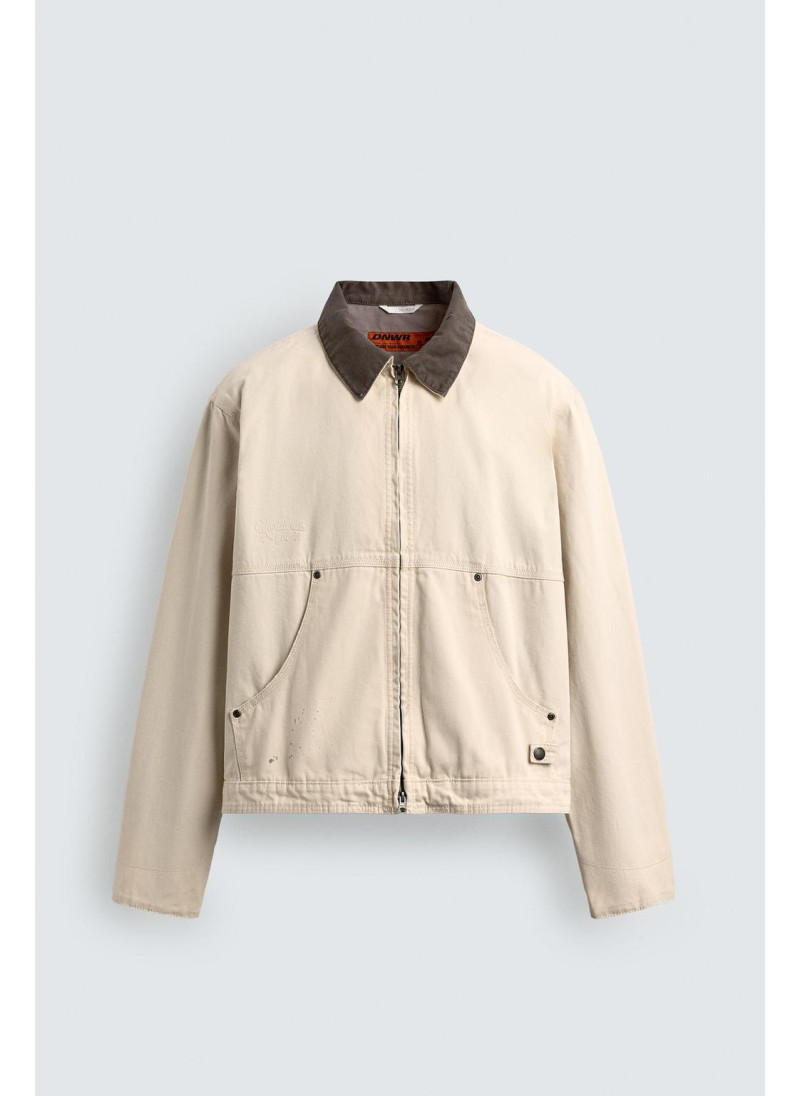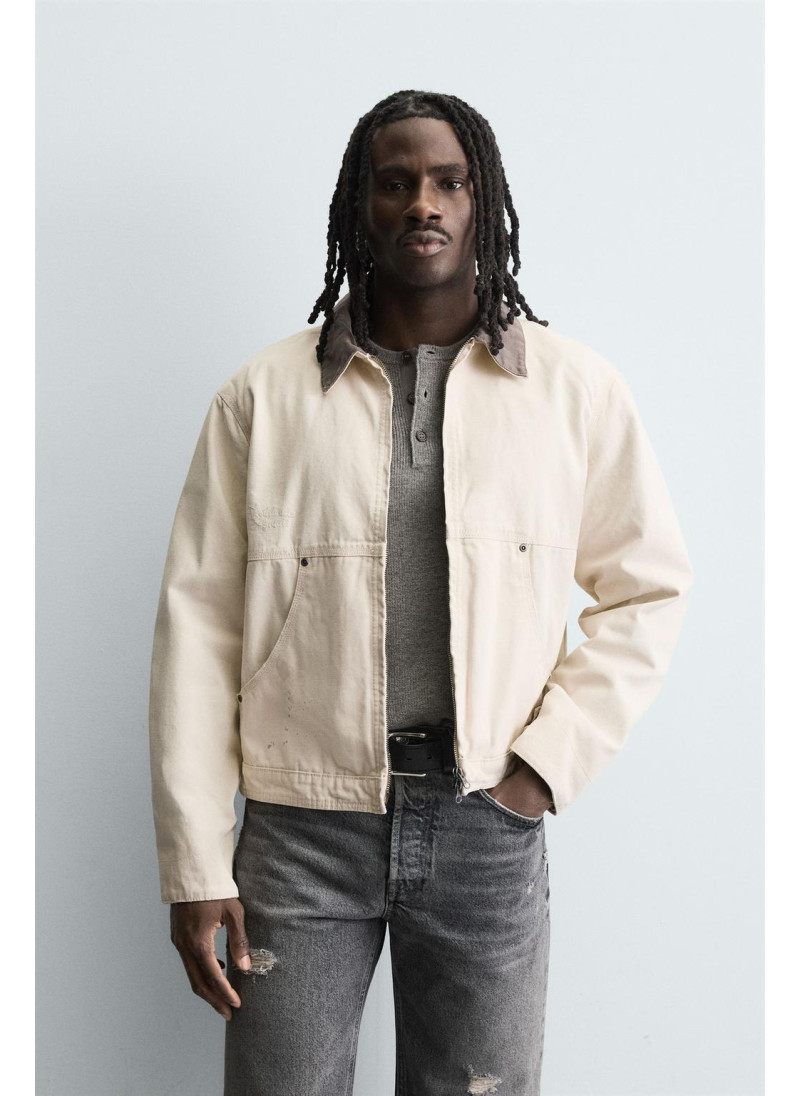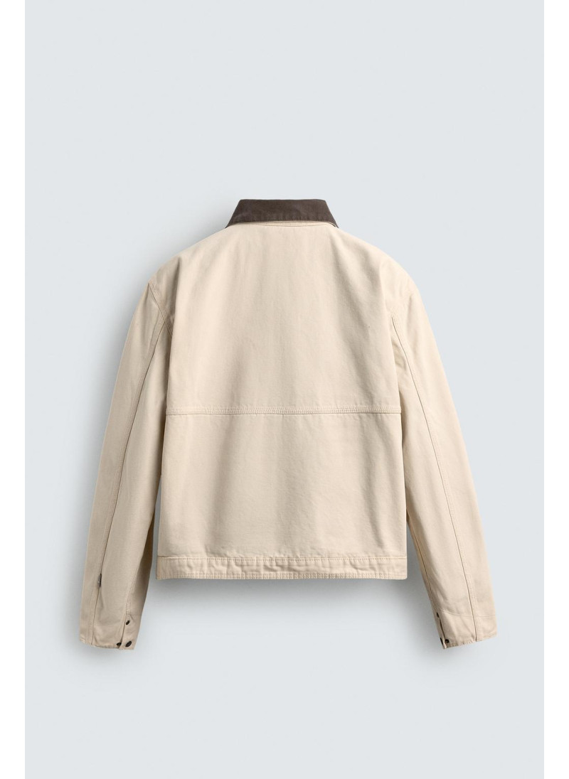 Элегантная куртка с контрастным воротником от Zara. Цвет: Молочно-белый. Артикул: Oyster-white | 4470/321/251...