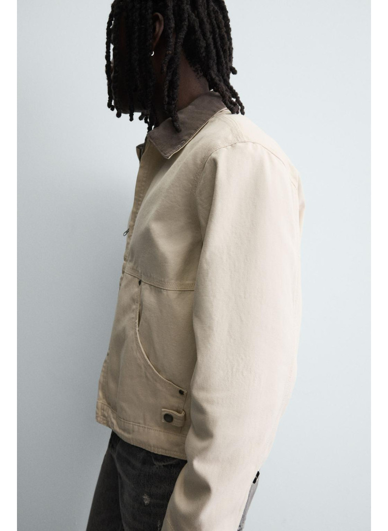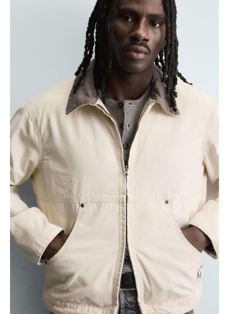 Элегантная куртка с контрастным воротником от Zara. Цвет: Молочно-белый. Артикул: Oyster-white | 4470/321/251.