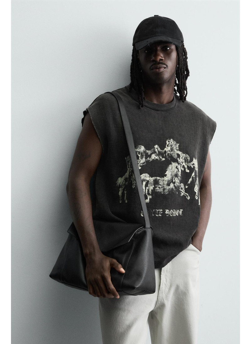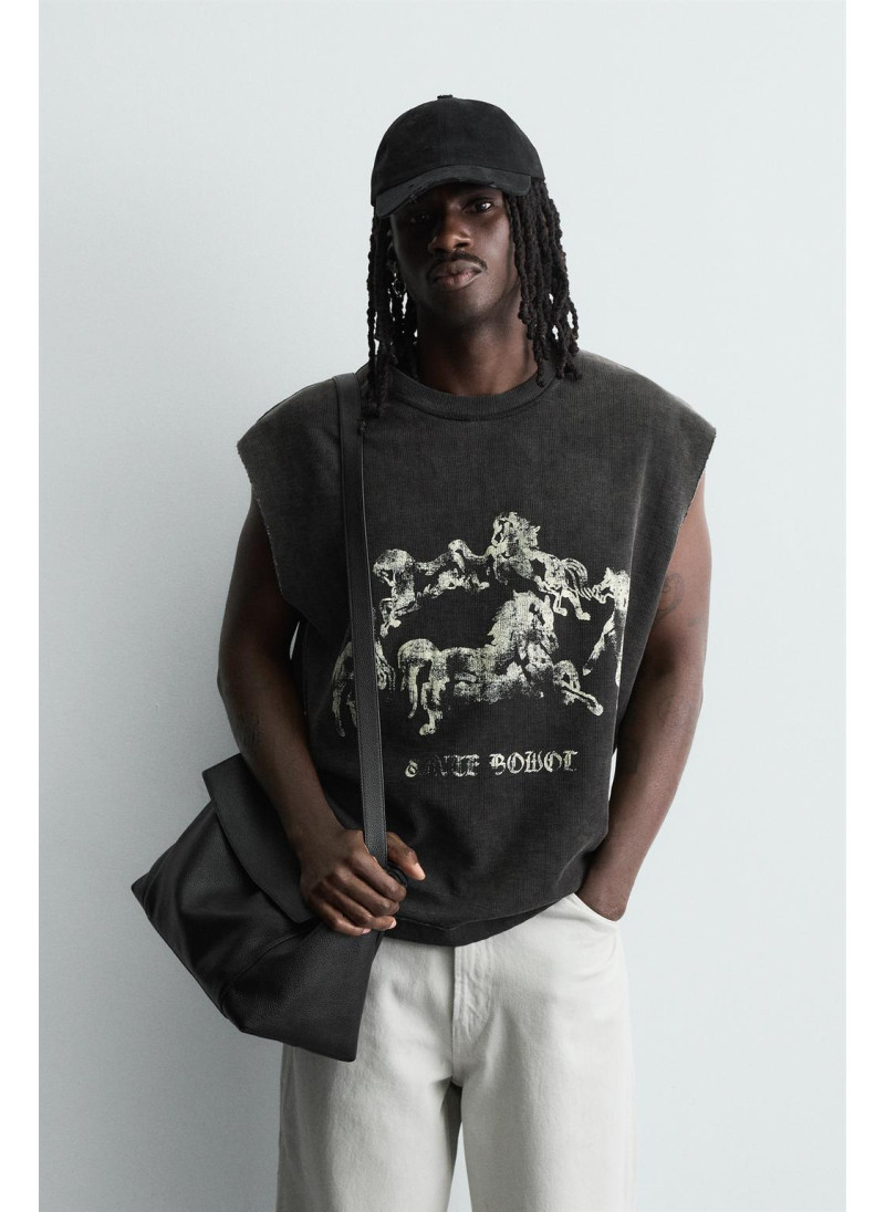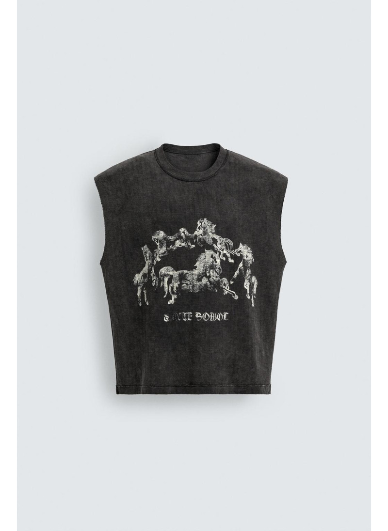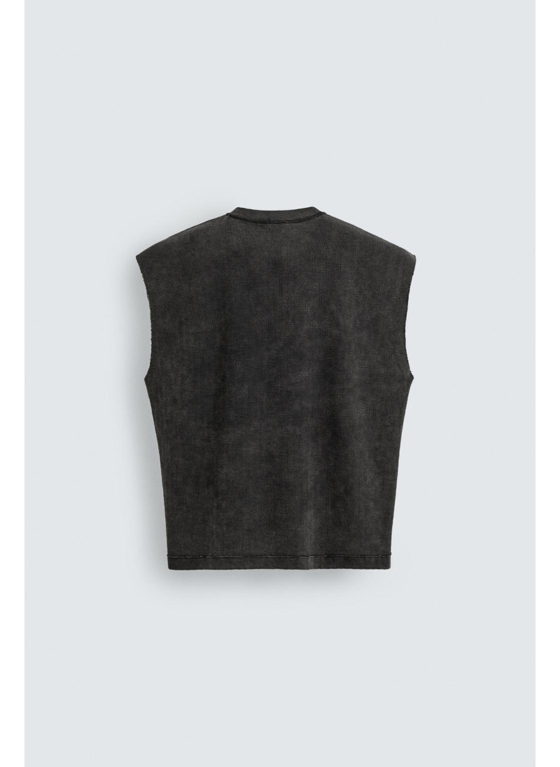Облегающая майка из вязаного хлопка. Круглый вырез и безрукавный рукав. Контрастный принт спереди. Эффект потертости. Этот элемент одежды имеет уникальный внешний вид благодаря специальному процессу окрашивания. По этой причине цвет товара может незначительно отличаться от того, что показано на фото...
