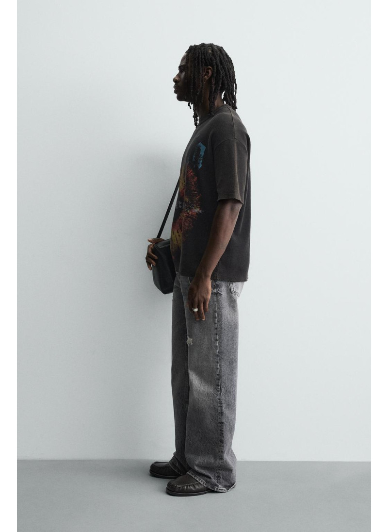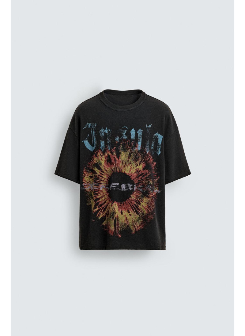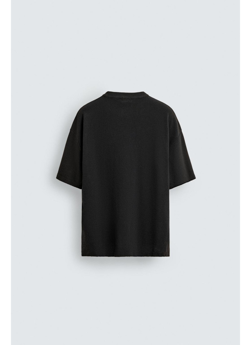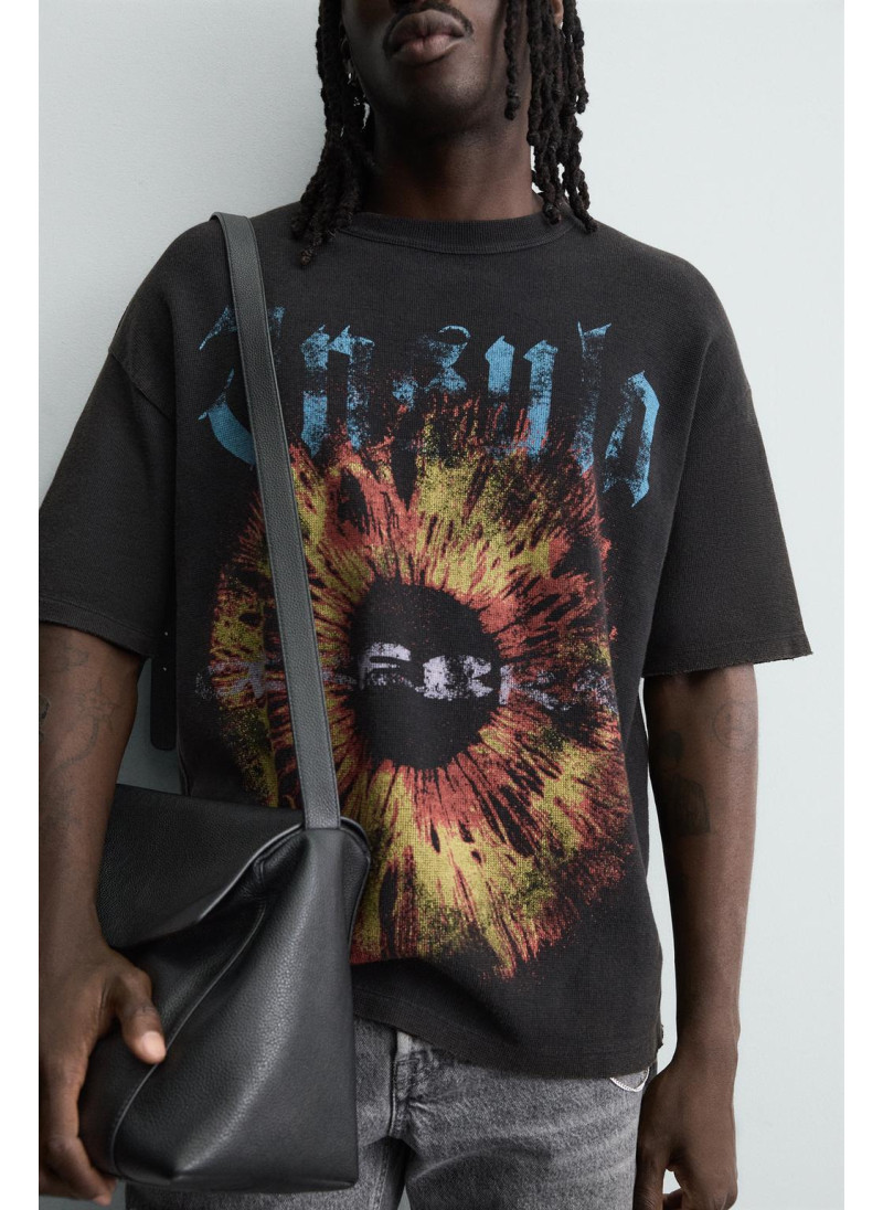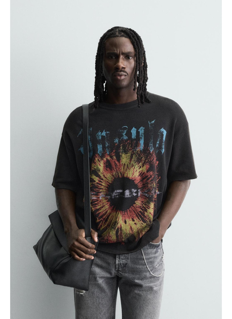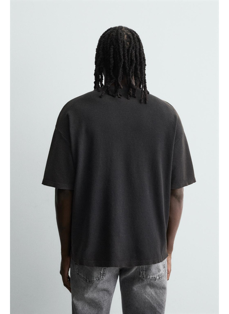 Свободная вязаная футболка из хлопка. Круглый вырез и короткий рукав. Контрастная печать спереди. Эффект выцветания. Этот предмет одежды имеет уникальный внешний вид благодаря специальному процессу стирки. По этой причине цвет может немного отличаться от того, что показано на фото...