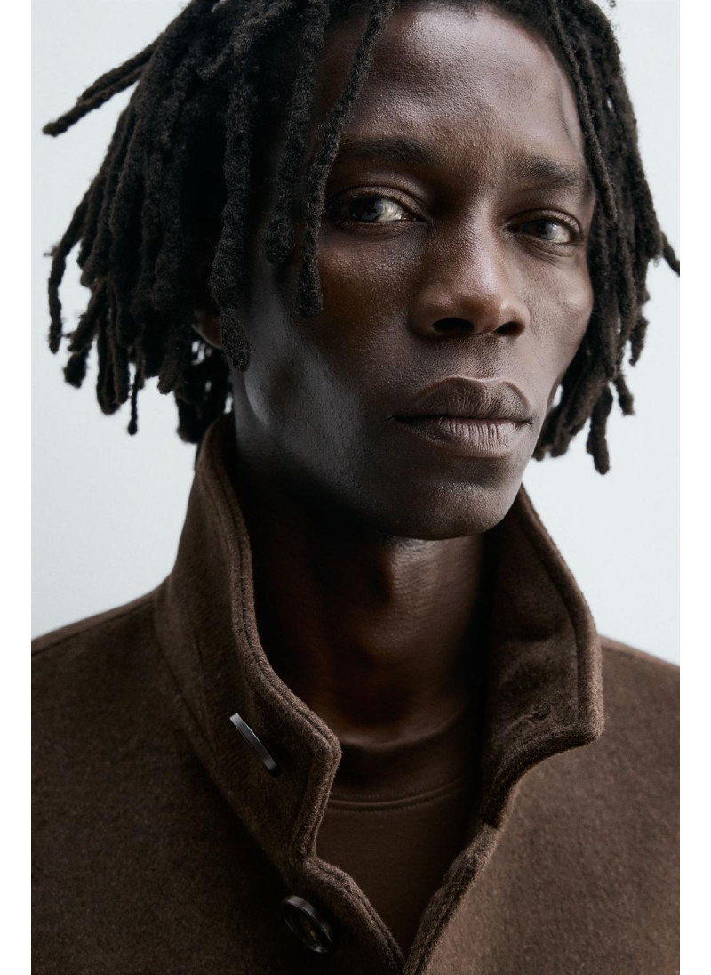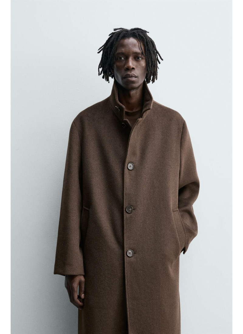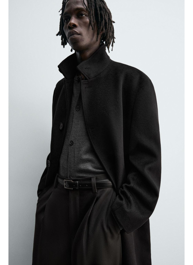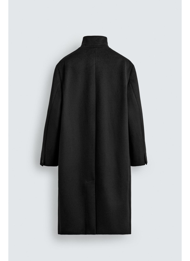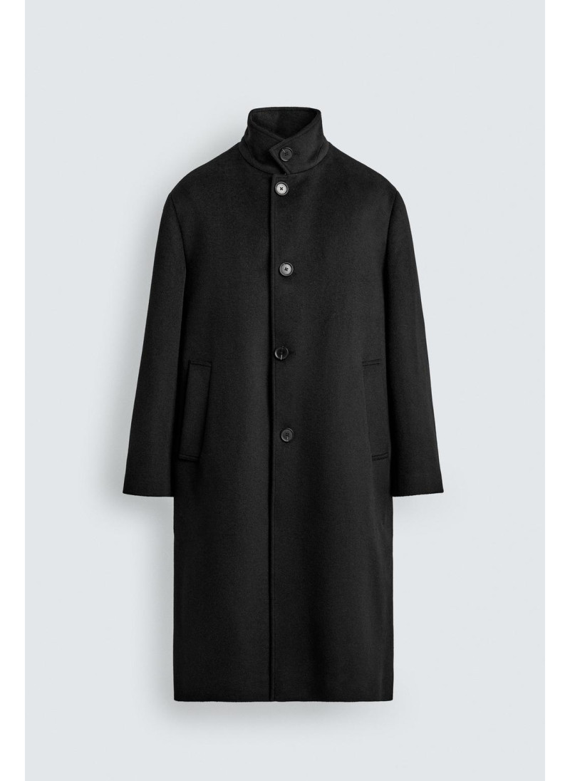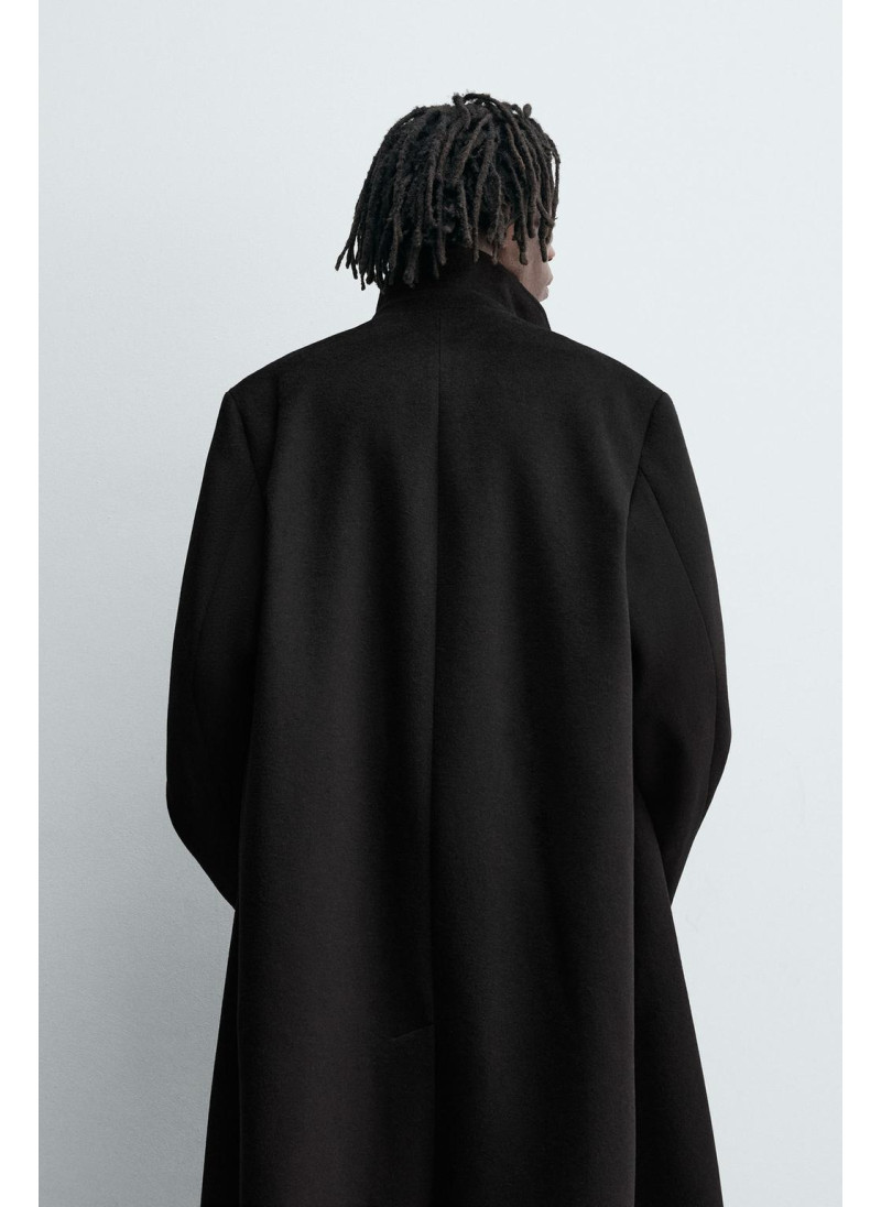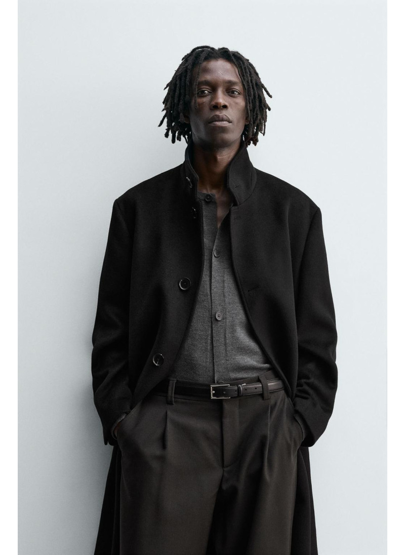Высота модели: 186 cm | Размер: L Пальто свободного кроя из шерстяной ткани. Высокий воротник, длинные рукава с манжетами на пуговицах. Прорезные карманы на бедрах. Шлица сзади. Застегивается на пуговицы спереди...