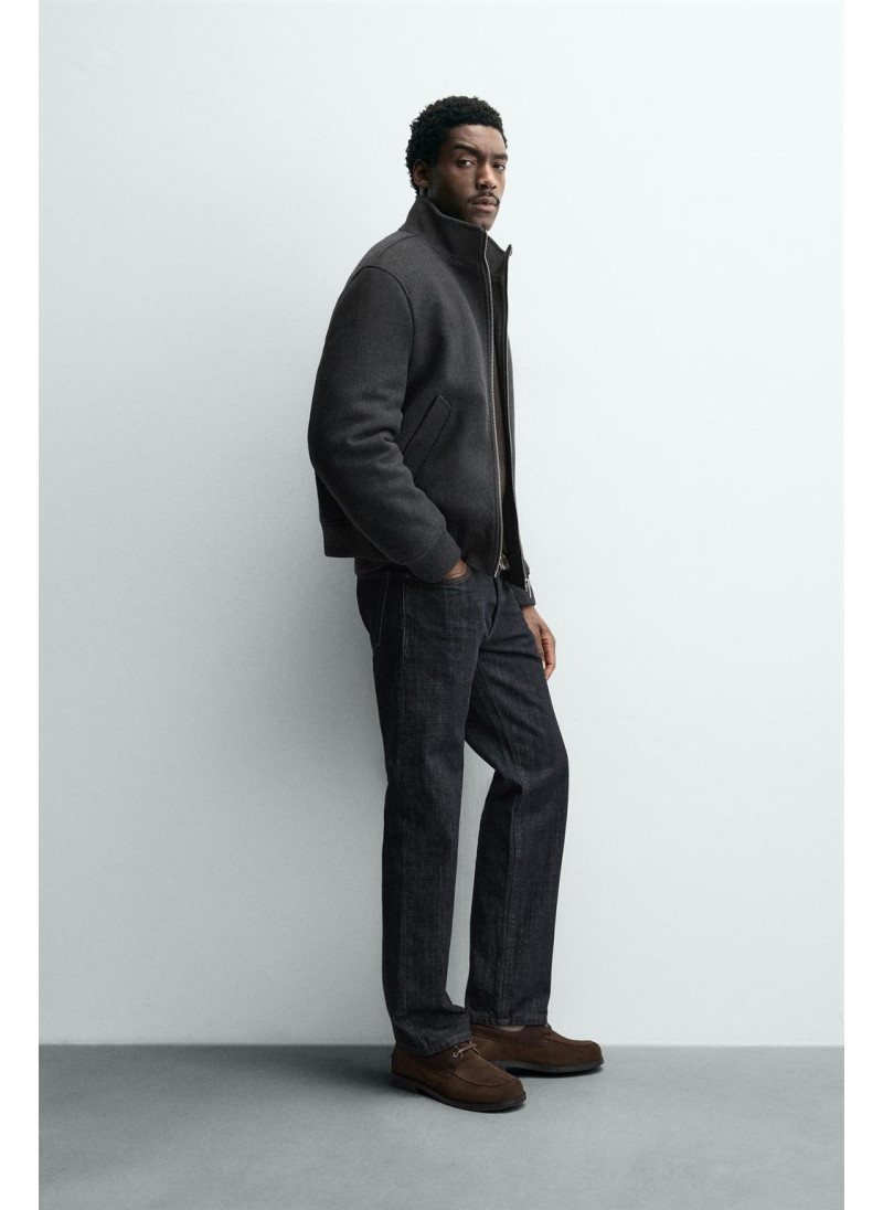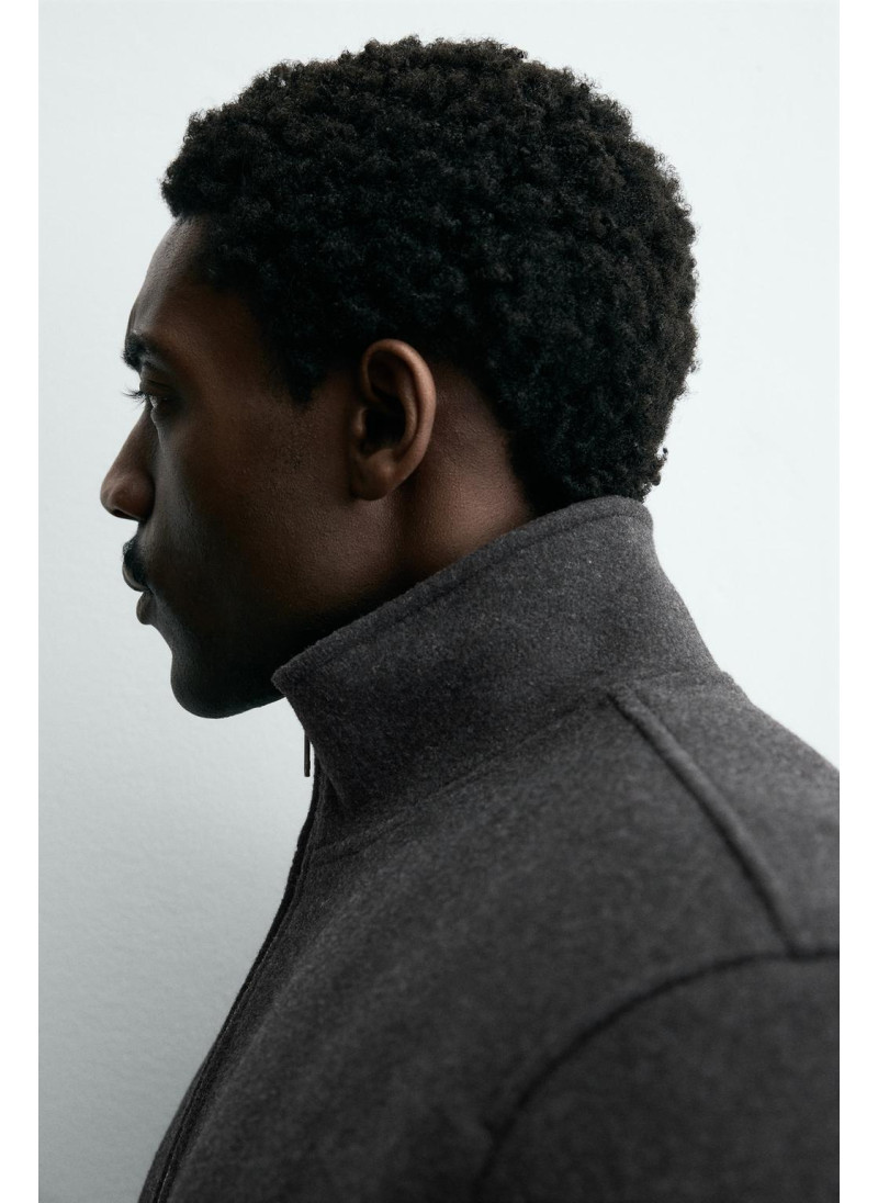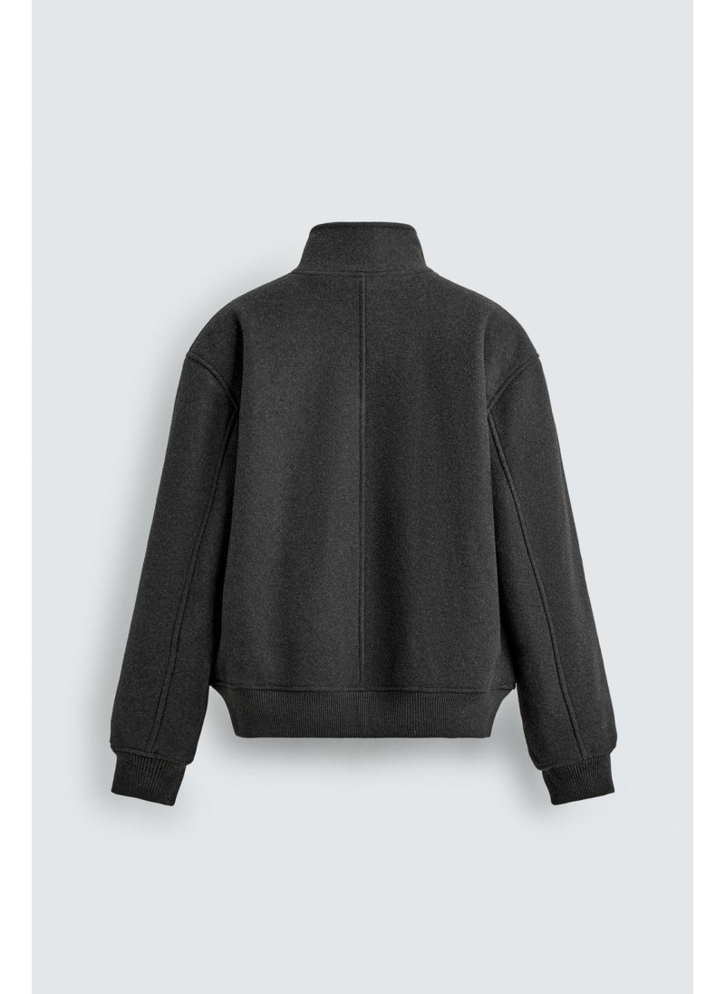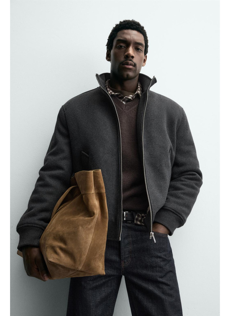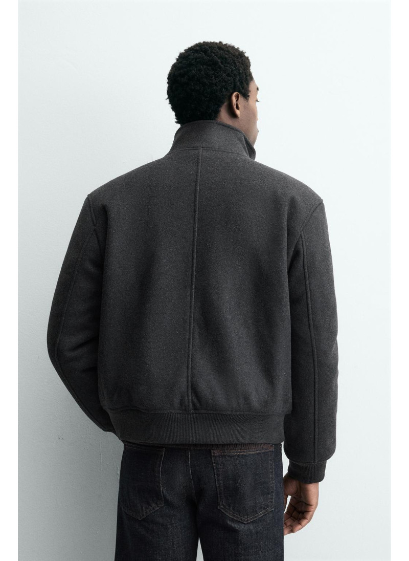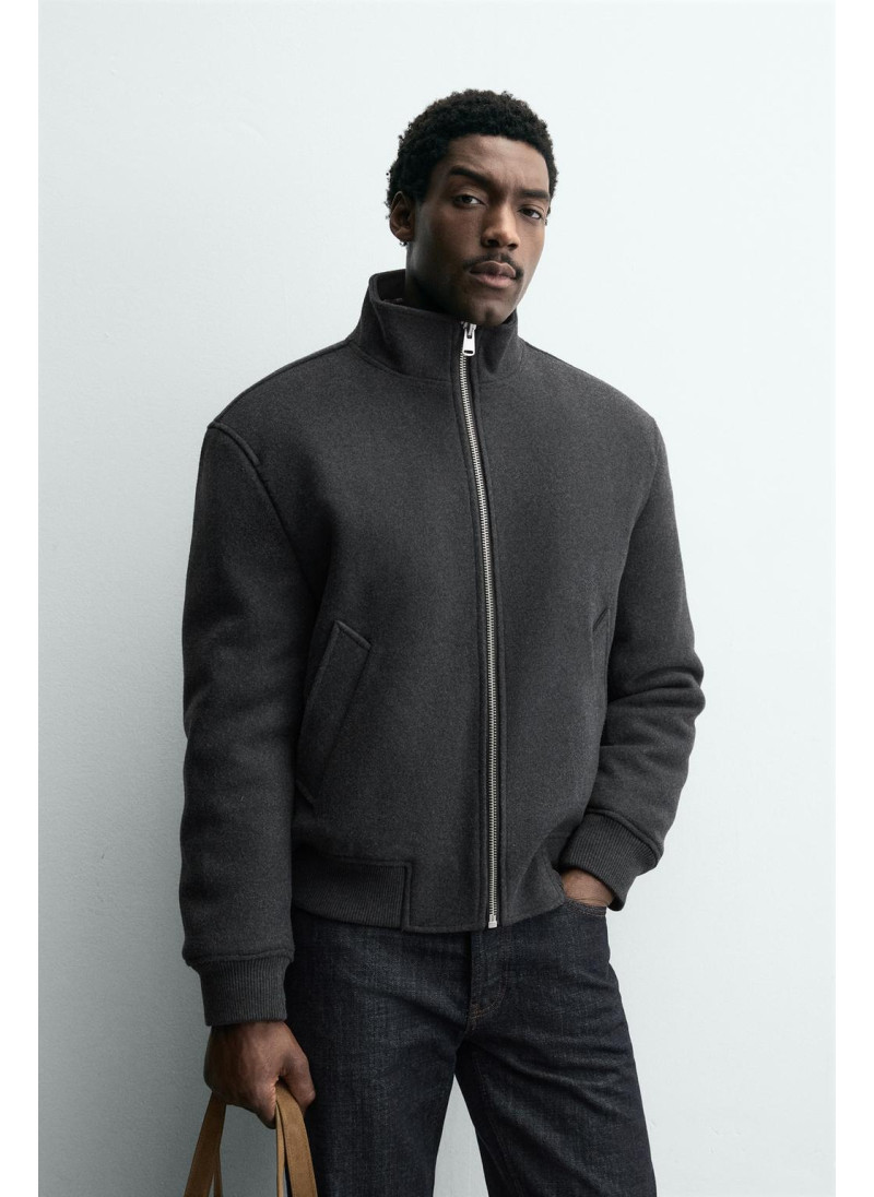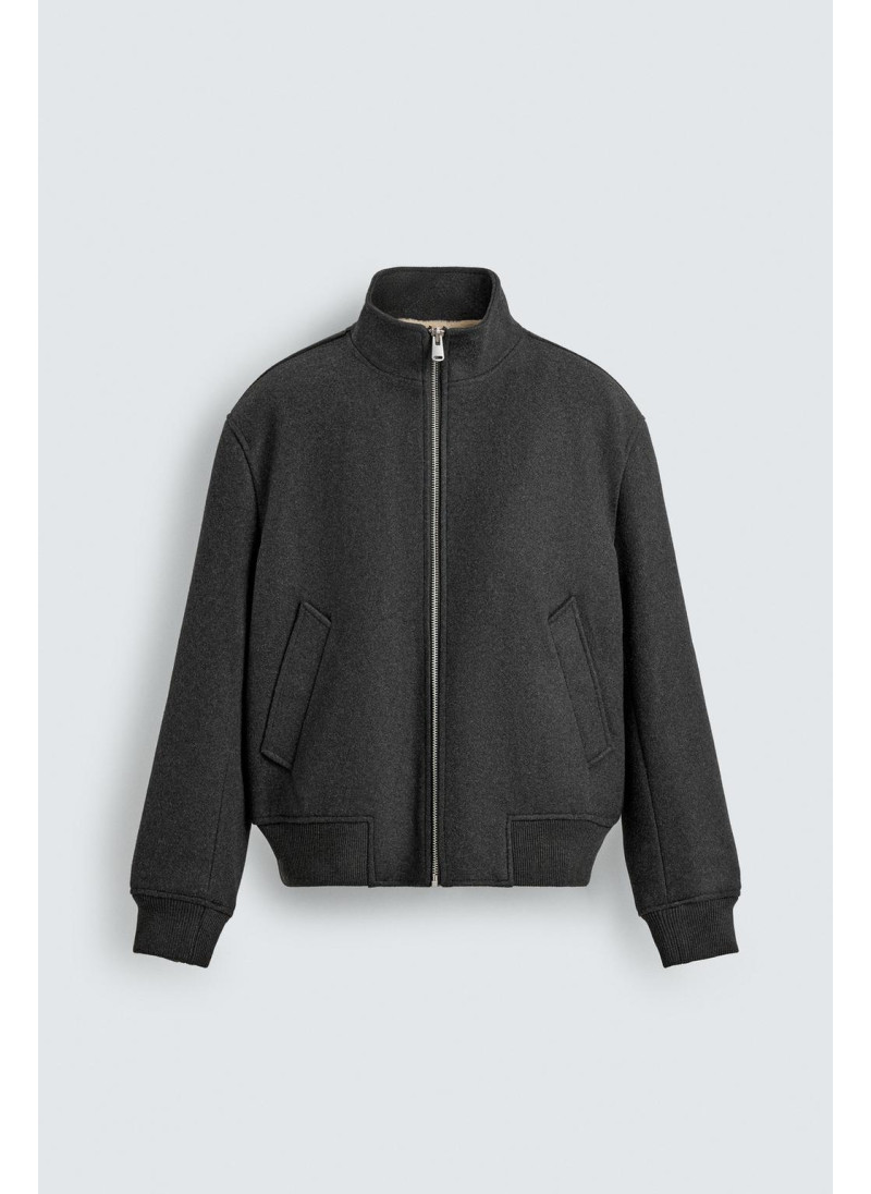 Куртка свободного кроя с подкладкой из искусственного меха. Высокий воротник и длинные рукава. Карманы в шве на бедрах, внутренний карман и манжеты в рубчик. Застежка на молнию.