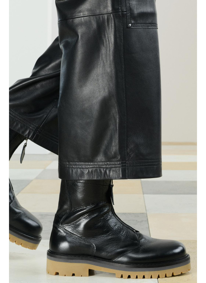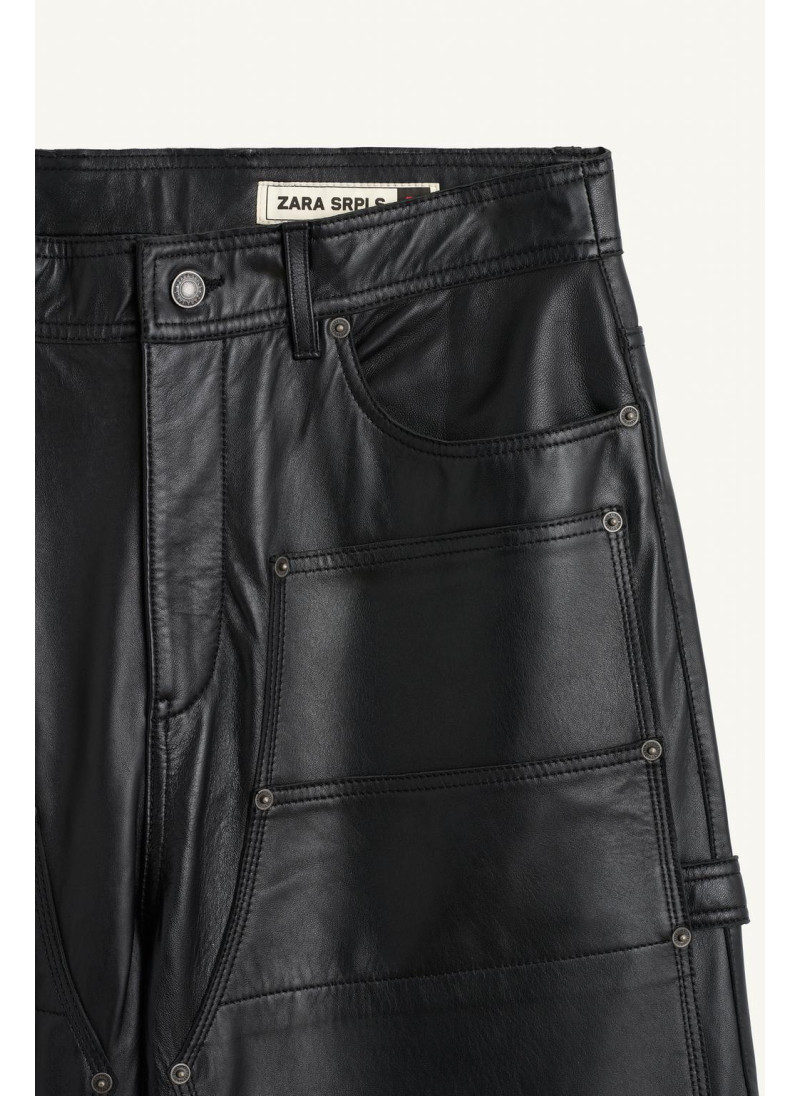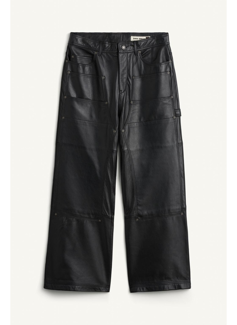 Элегантные черные кожаные брюки бренда Zara.