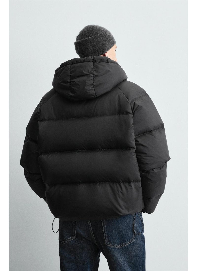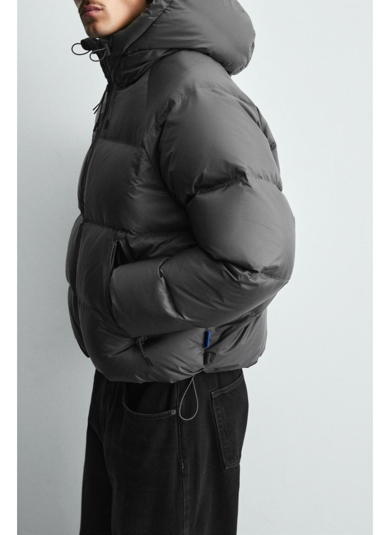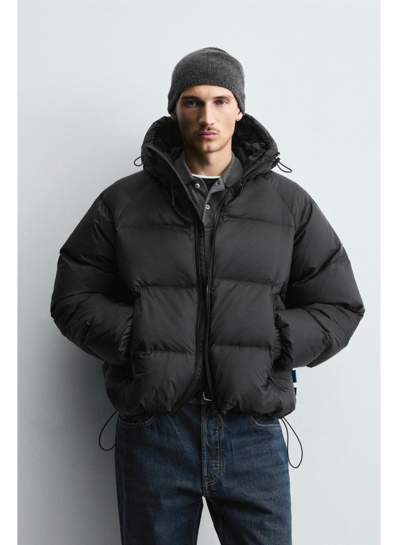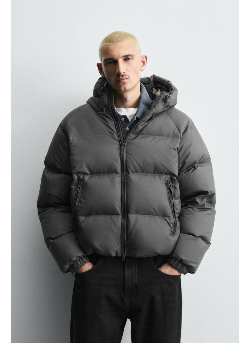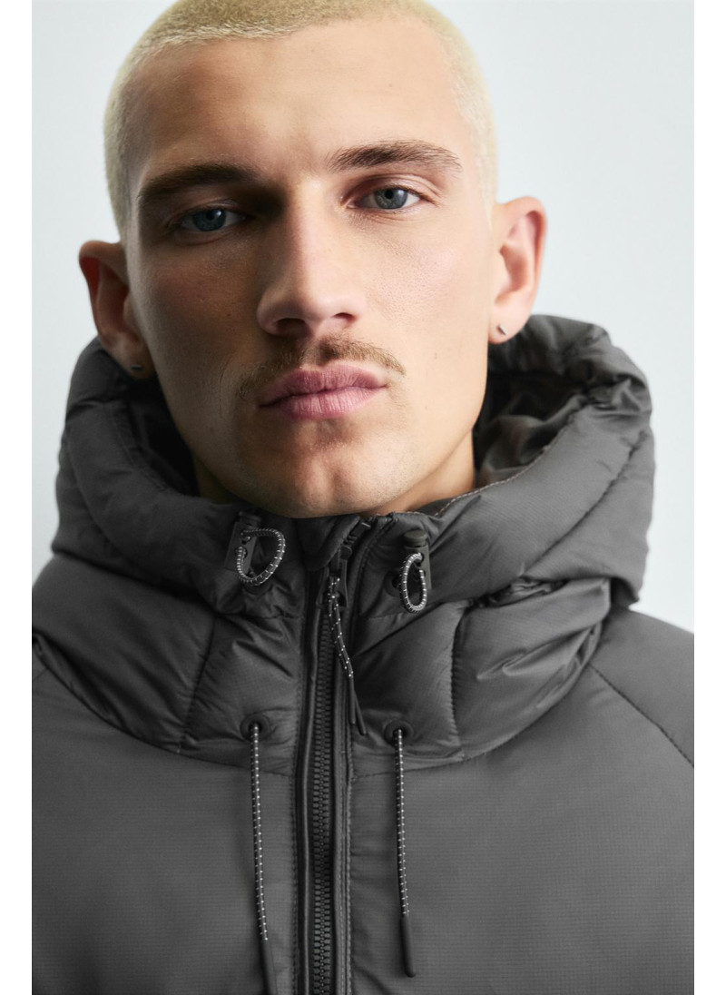 Стеганый пуховик из технической ткани рипстоп, устойчивой к разрывам. Наполнитель интерьера состоит из смеси пера и пуха. Высокий воротник с регулируемым капюшоном, длинные рукава с эластичными манжетами. Карманы с отворотом на бедрах и внутренний карман. Регулируемый подол с эластичной вставкой по бокам. Застежка на молнию. - Водоотталкивающая техническая ткань. Материал помогает оставаться сухи..