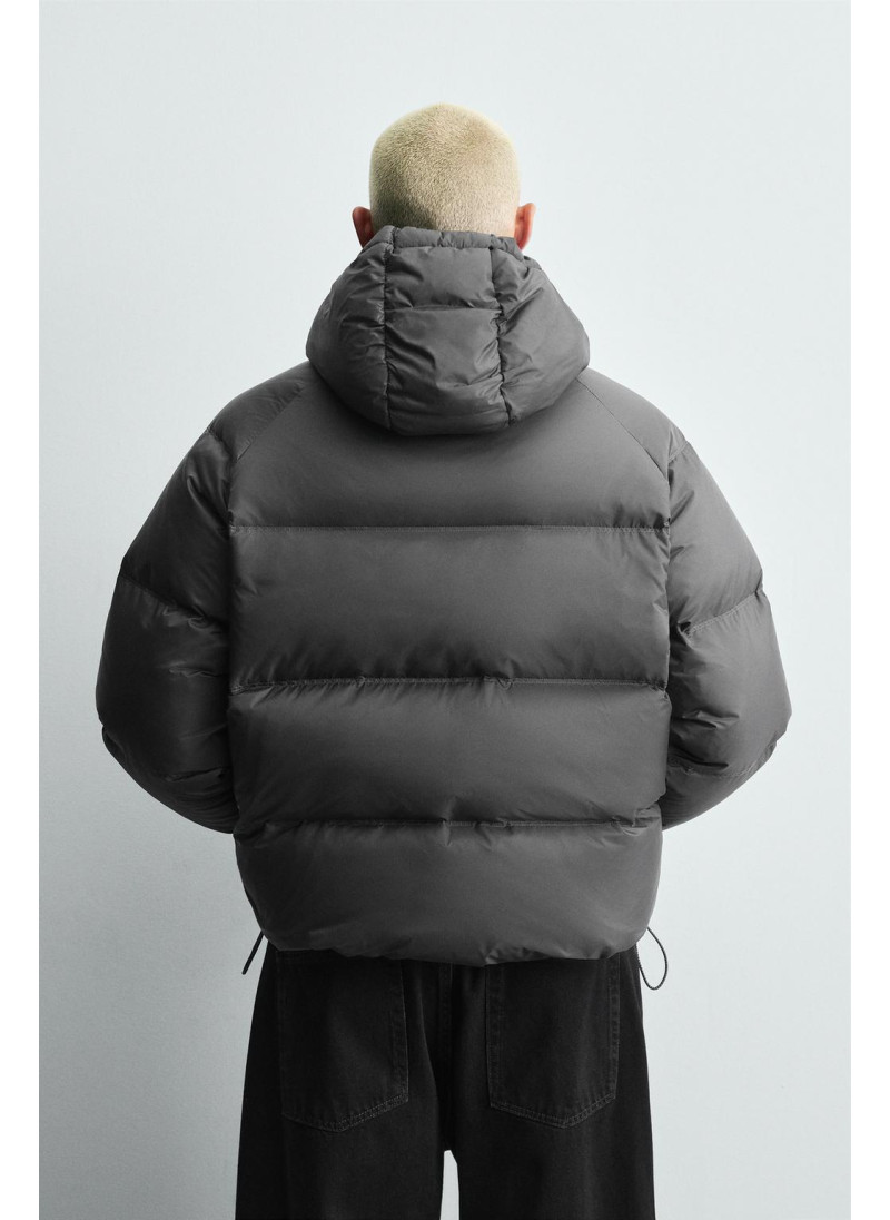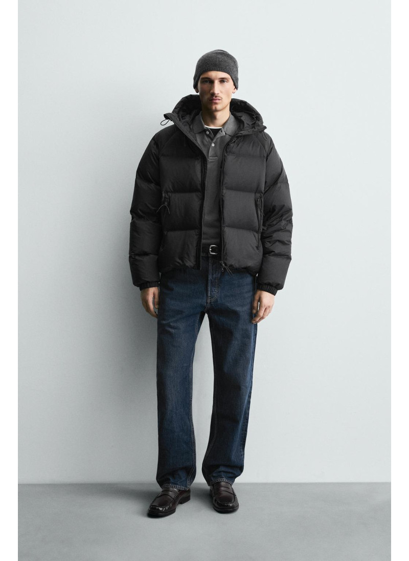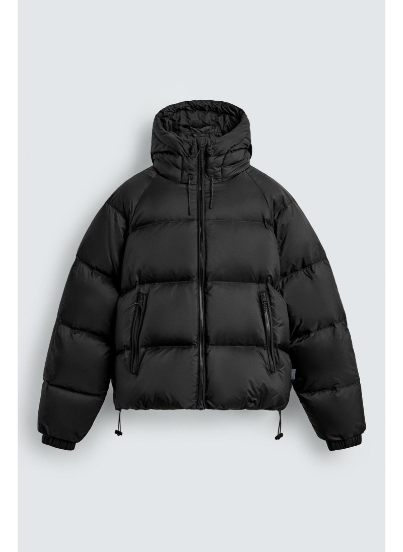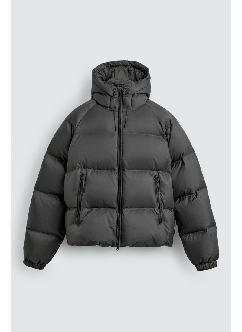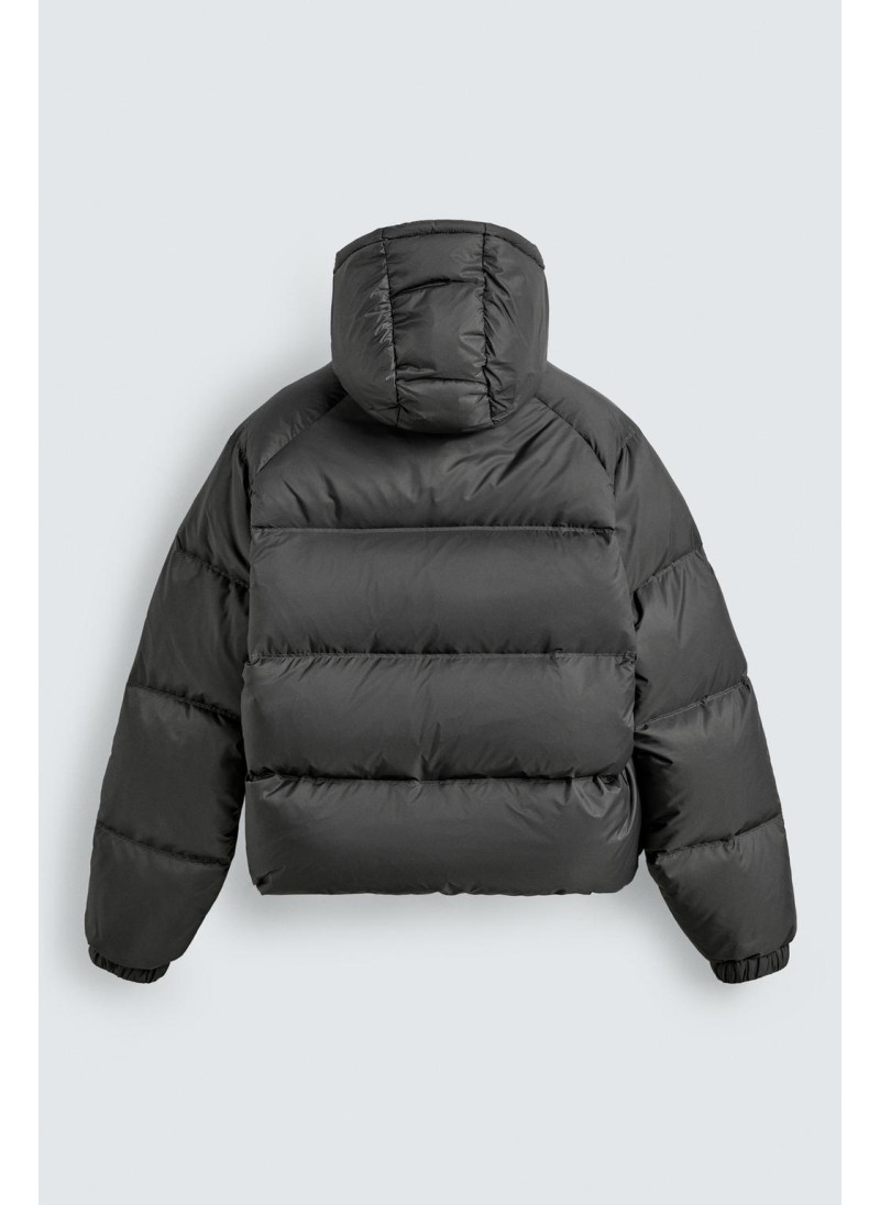 Стеганый пуховик из технической ткани рипстоп, устойчивой к разрывам. Наполнитель интерьера состоит из смеси пера и пуха. Высокий воротник с регулируемым капюшоном, длинные рукава с эластичными манжетами. Карманы с отворотом на бедрах и внутренний карман. Регулируемый подол с эластичной вставкой по бокам. Застежка на молнию. - Водоотталкивающая техническая ткань. Материал помогает оставаться сухи..