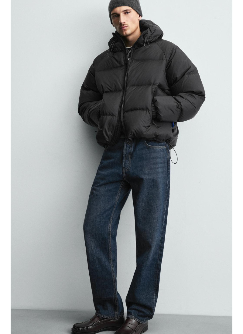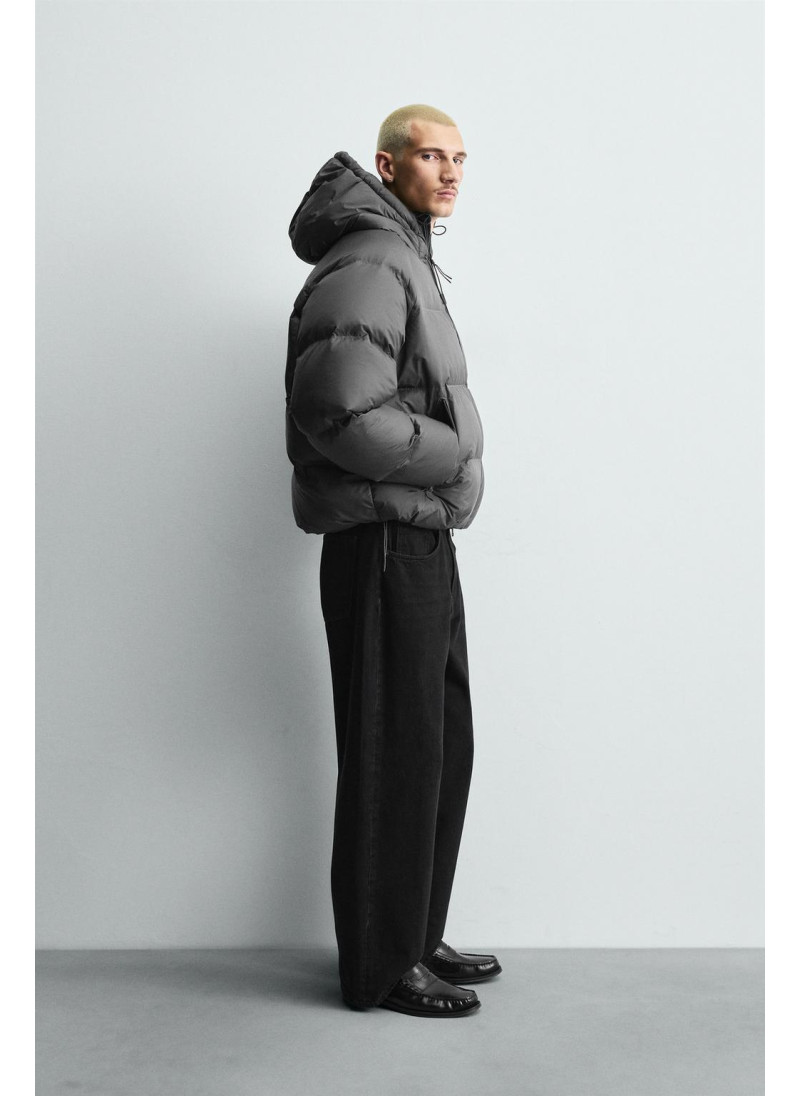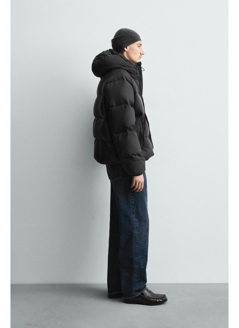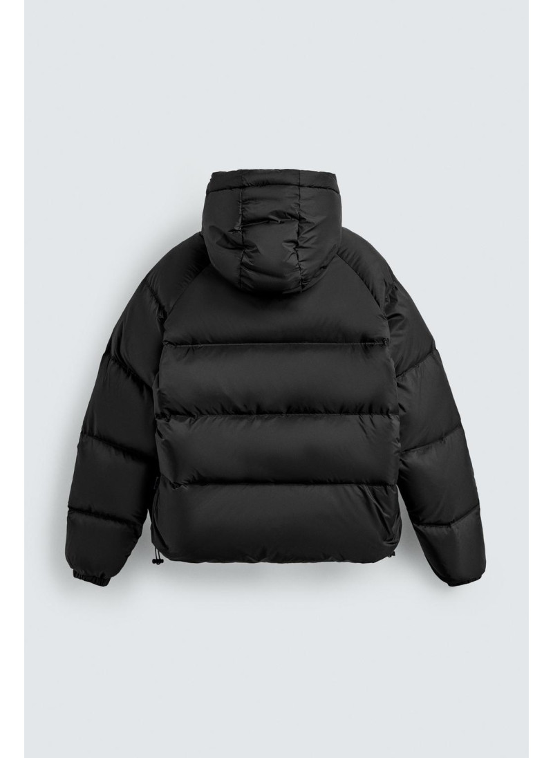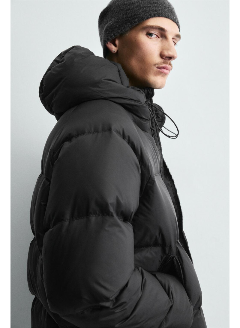 Стеганый пуховик из технической ткани рипстоп, устойчивой к разрывам. Наполнитель интерьера состоит из смеси пера и пуха. Высокий воротник с регулируемым капюшоном, длинные рукава с эластичными манжетами. Карманы с отворотом на бедрах и внутренний карман. Регулируемый подол с эластичной вставкой по бокам. Застежка на молнию. - Водоотталкивающая техническая ткань. Материал помогает оставаться сухи..