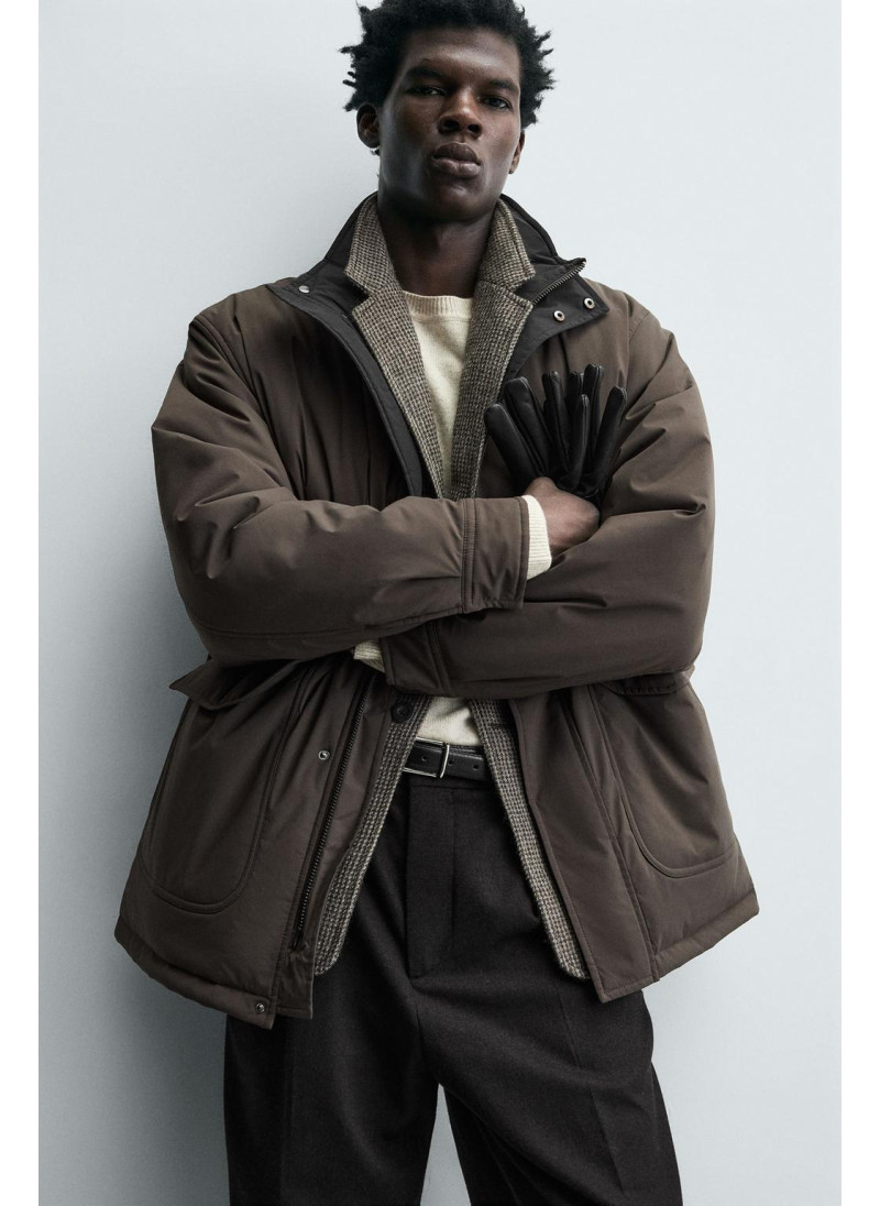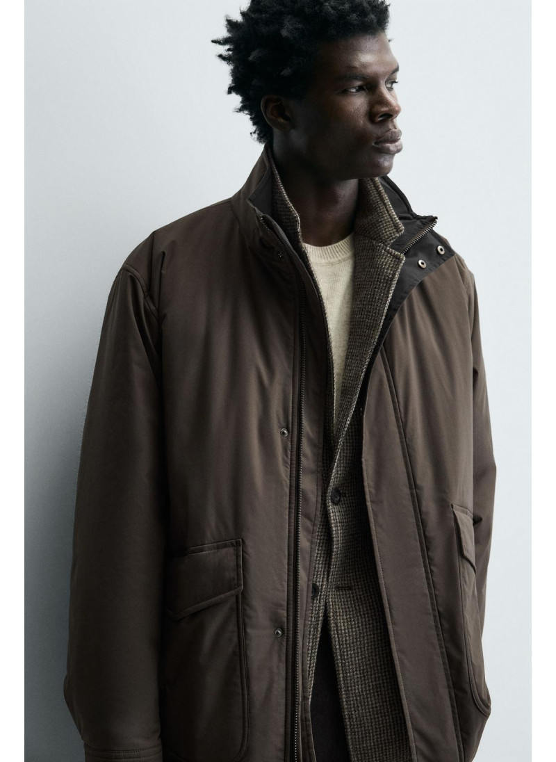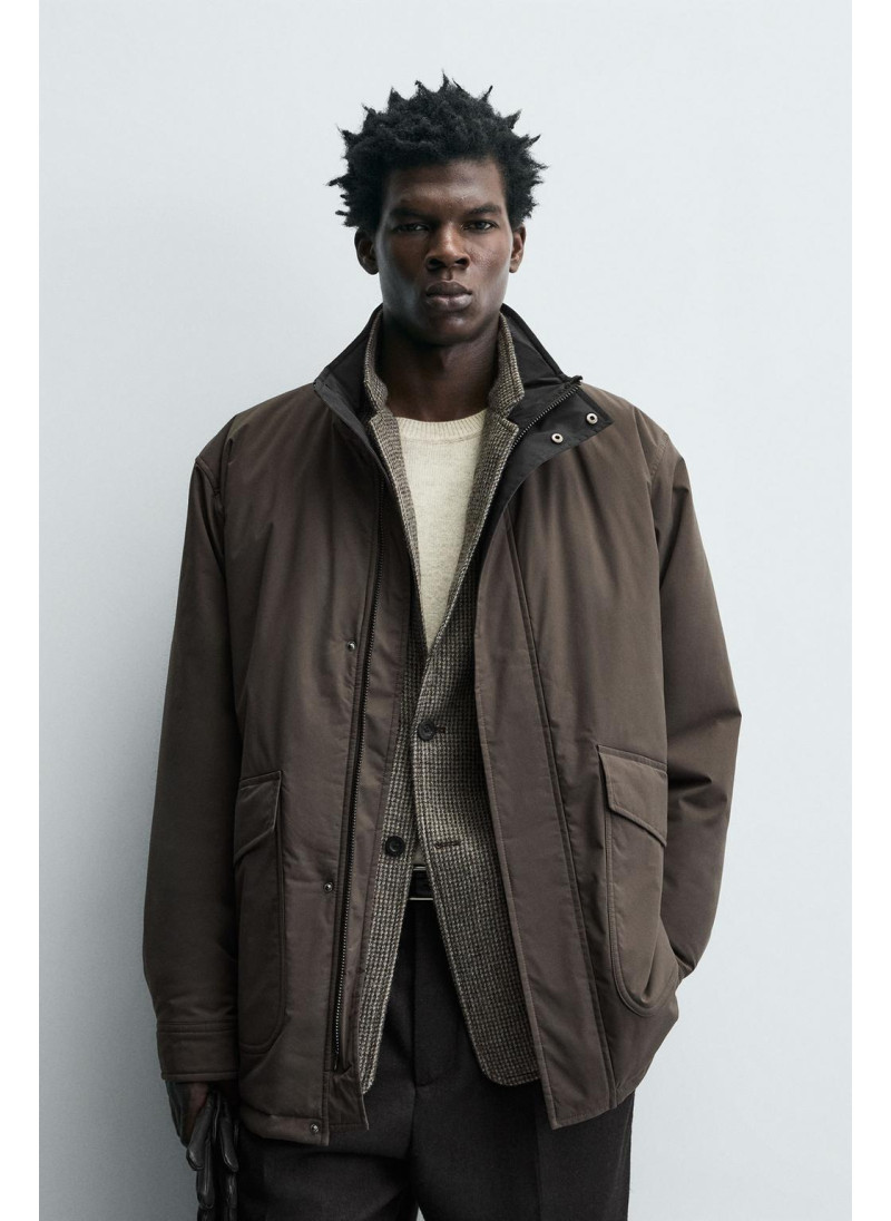 Высота модели: 186 cm | Размер: L Куртка классического кроя из высокотехнологичной ткани со стеганой подкладкой. Высокий воротник, длинные рукава с манжетами на пуговицах. Накладные карманы с клапанами на бедрах. Внутренний карман, застежка-молния, скрытая под планкой с кнопками...