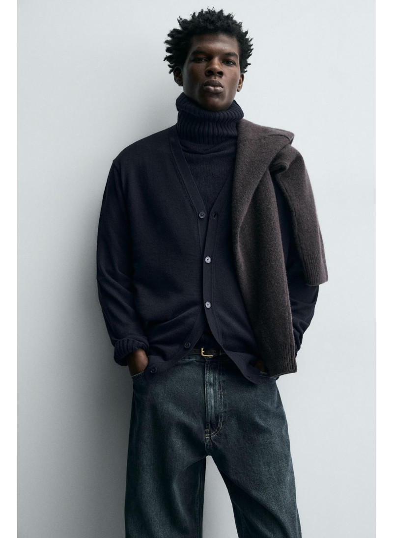 Высота модели: 186 cm | Размер: L Кардиган классического кроя из легкой шерстяной пряжи. V-образный вырез и длинные рукава. Отделка в рубчик. Застежка на пуговицы спереди...