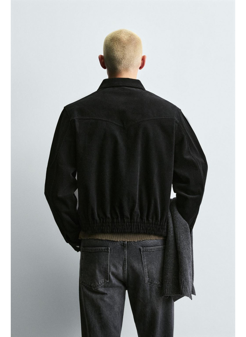 Рубашка в стиле оверсайз из эластичного вельвета. Оснащена воротником с лацканами и длинными рукавами с застежкой на кнопки. Накладные карманы с клапанами на груди и карманы по бокам. Застежка на молнию спереди...