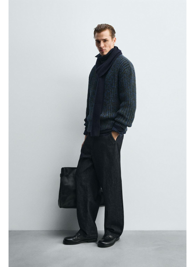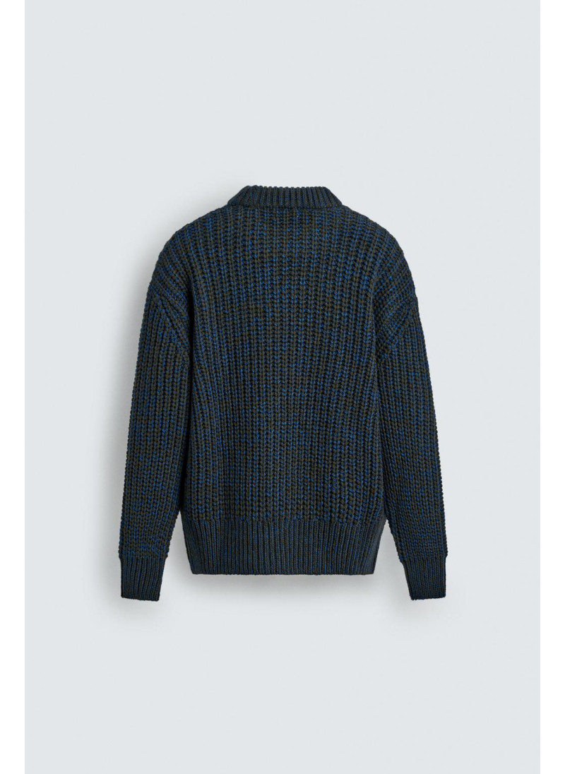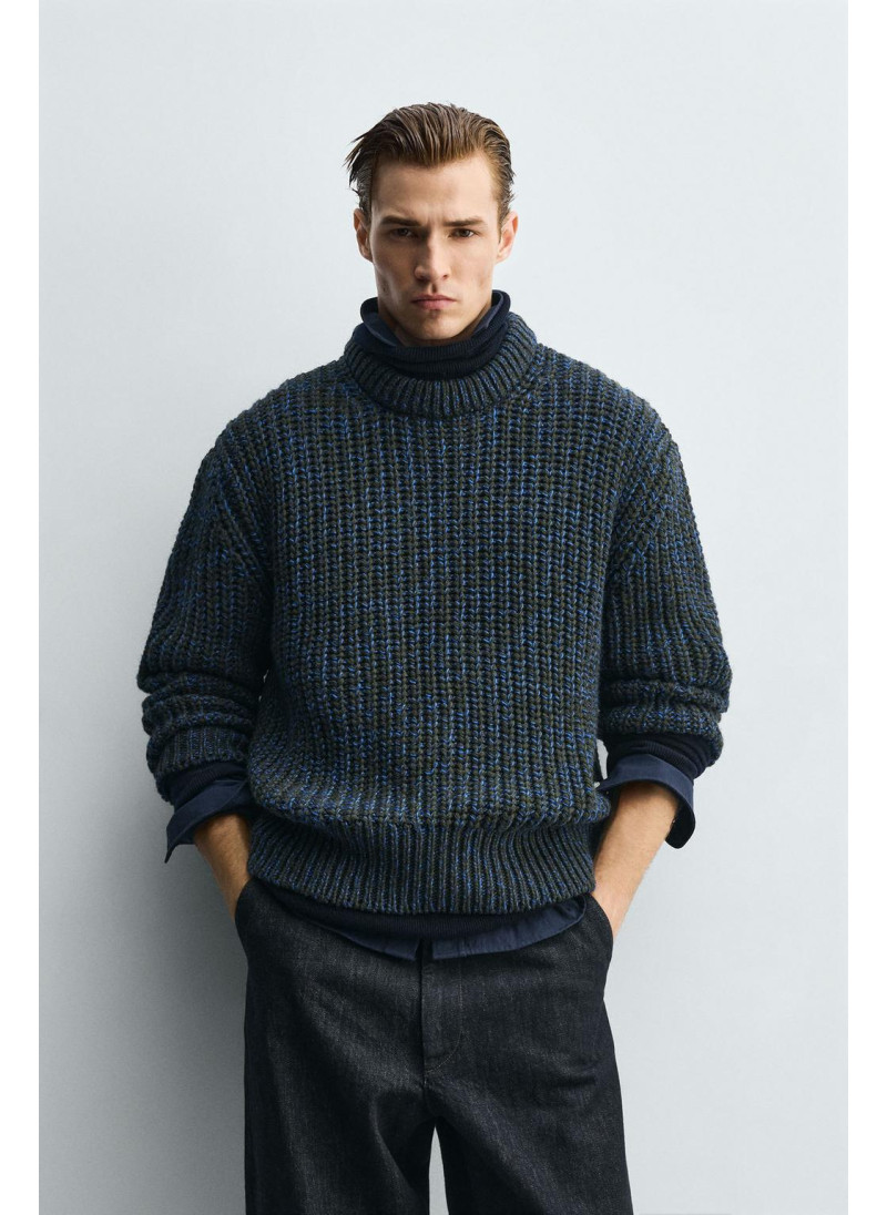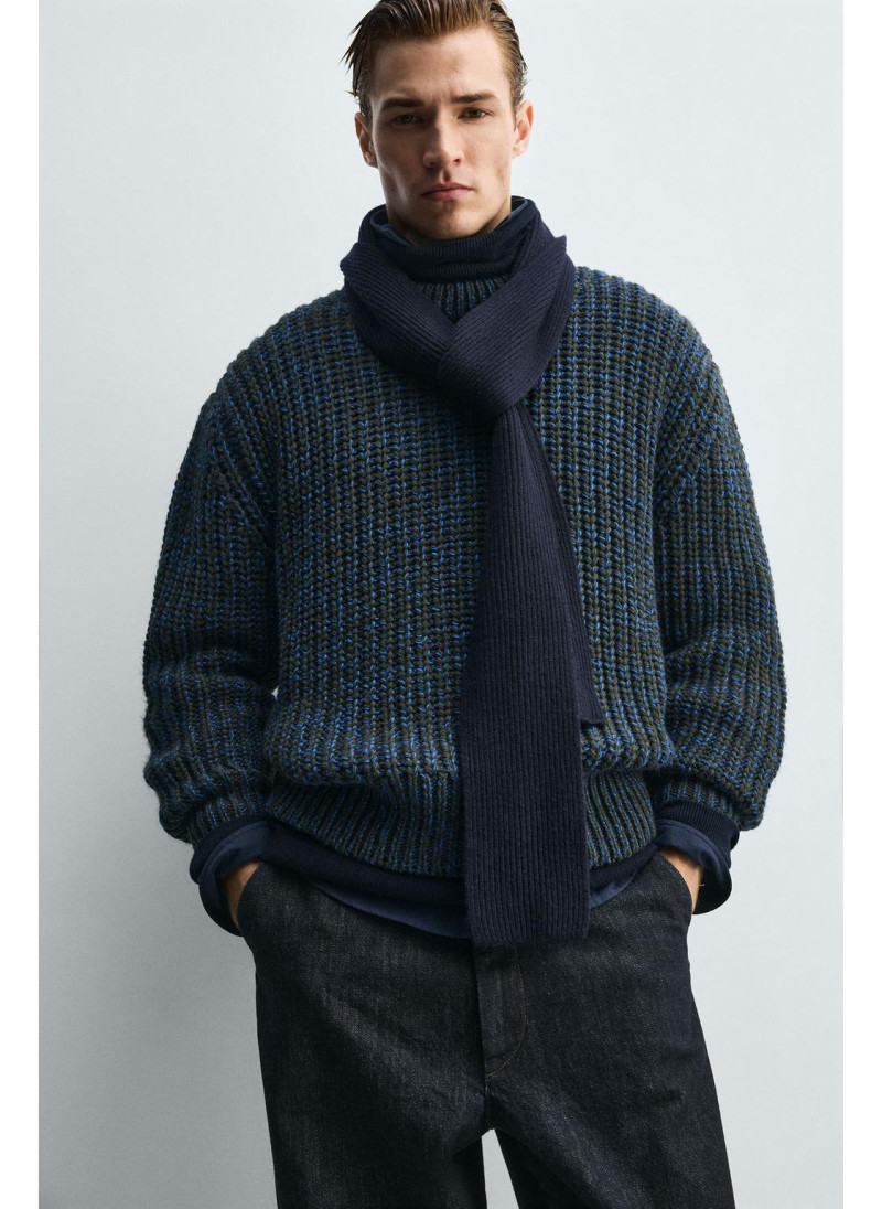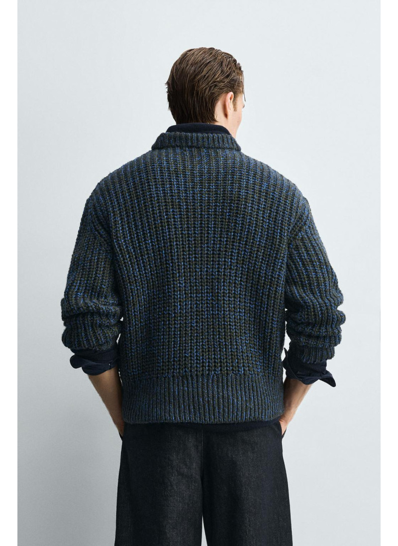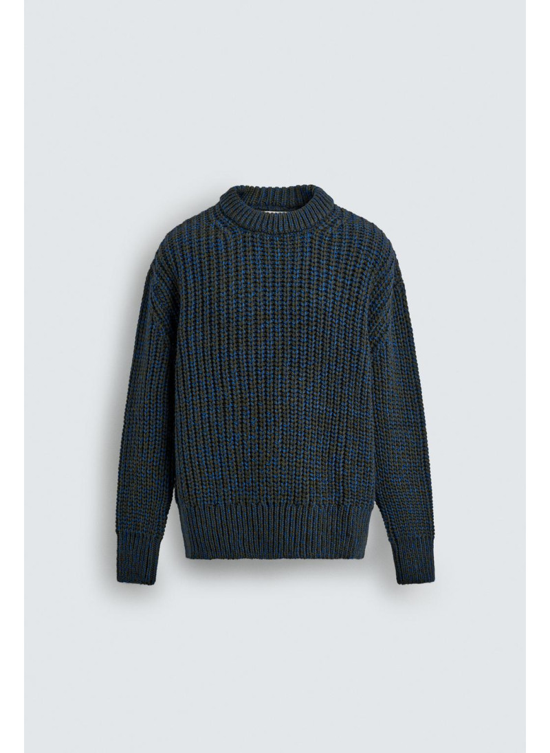 Джемпер свободного кроя из вязаного материала с добавлением шерсти. Круглый вырез и длинные рукава. Рифленые манжеты.