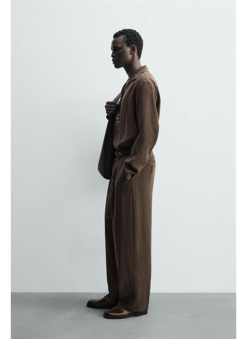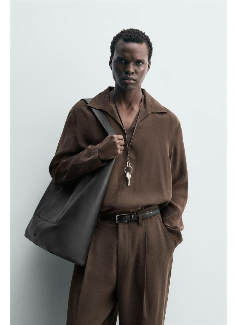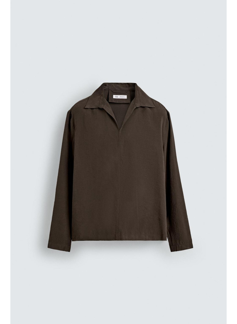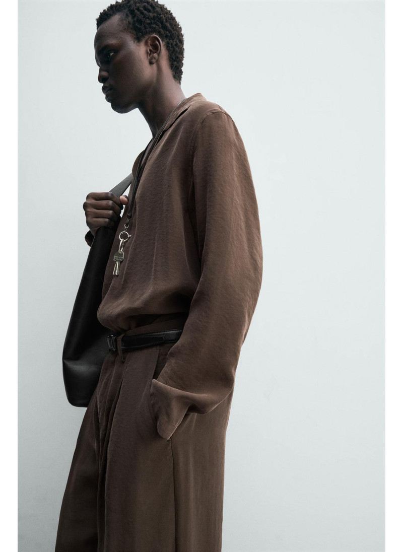 Шелковое поло коричневого цвета с плавными линиями. Сочетание комфорта и стиля.