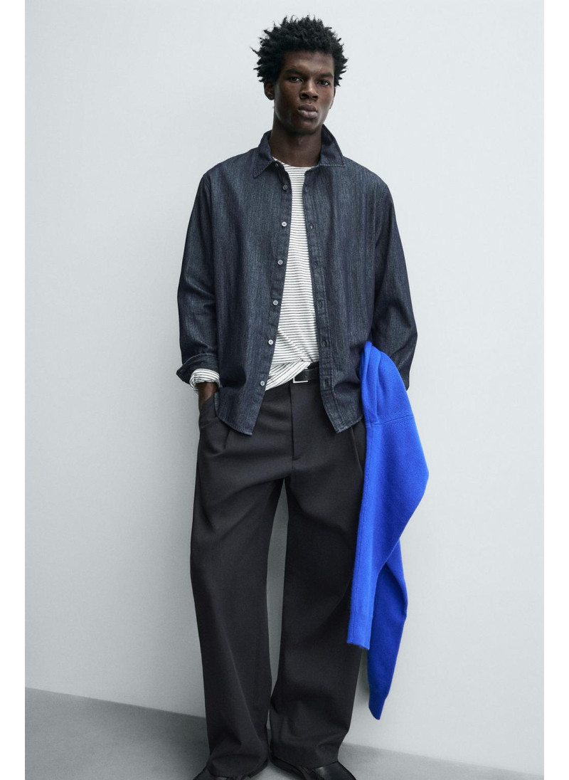 Высота модели: 186 cm | Размер: L Рубашка классического кроя из нестираного хлопкового денима. Это придает ей жесткий вид при первом использовании, который со временем исчезнет. Отложной воротник и длинные рукава с манжетами на пуговицах. Застежка на пуговицы спереди...