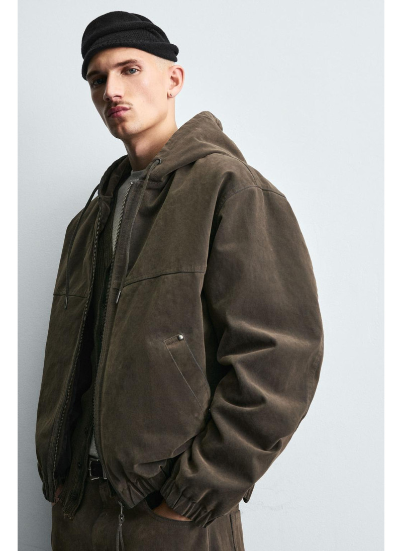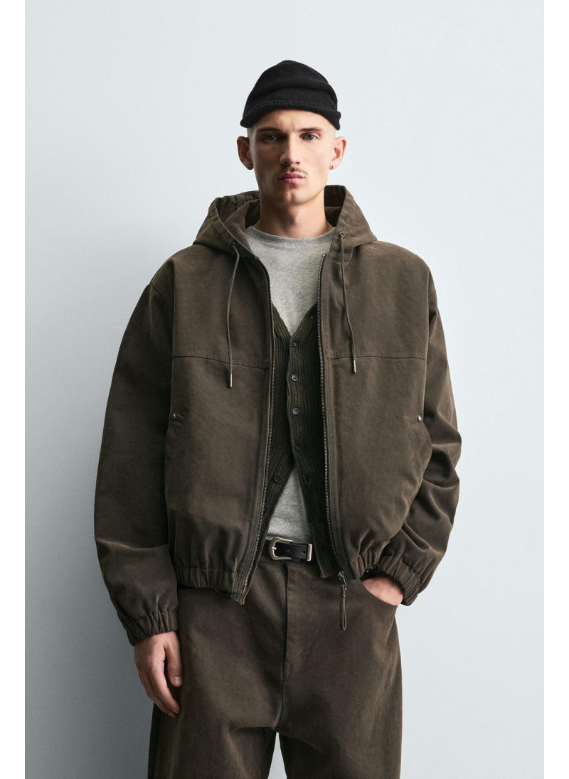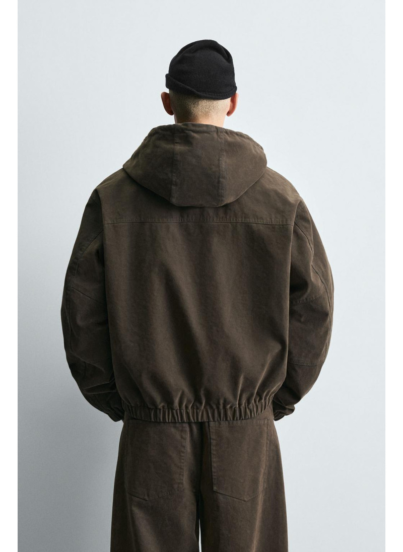 Пуховик свободного кроя из хлопковой ткани с бархатистым вельветовым покрытием. Утепленный интерьер. Регулируемый капюшон с длинным рукавом. Карманы в шве на бедрах и внутренний карман. Эластичные манжеты. Застежка-молния спереди.