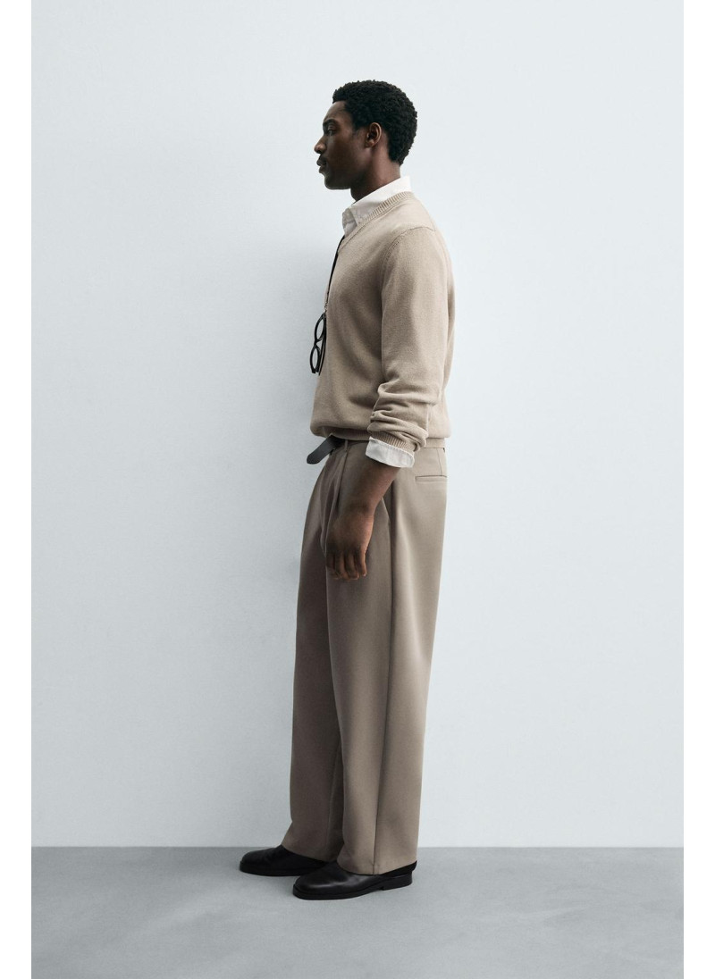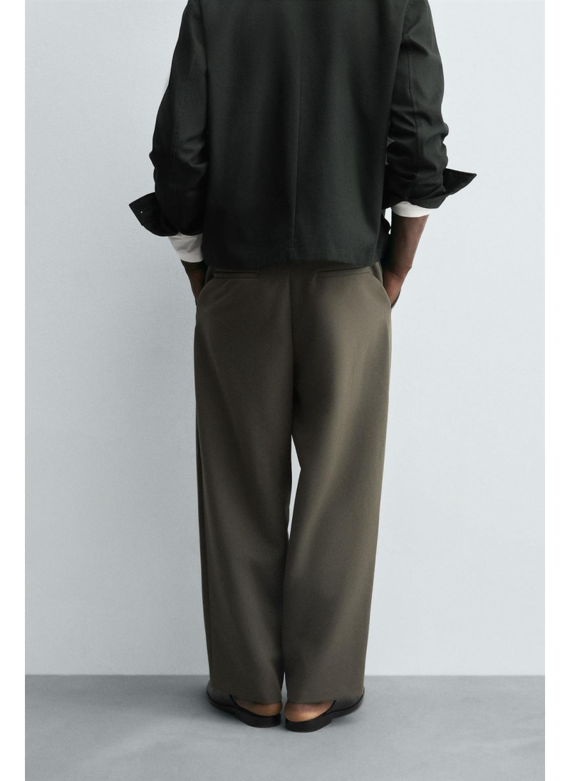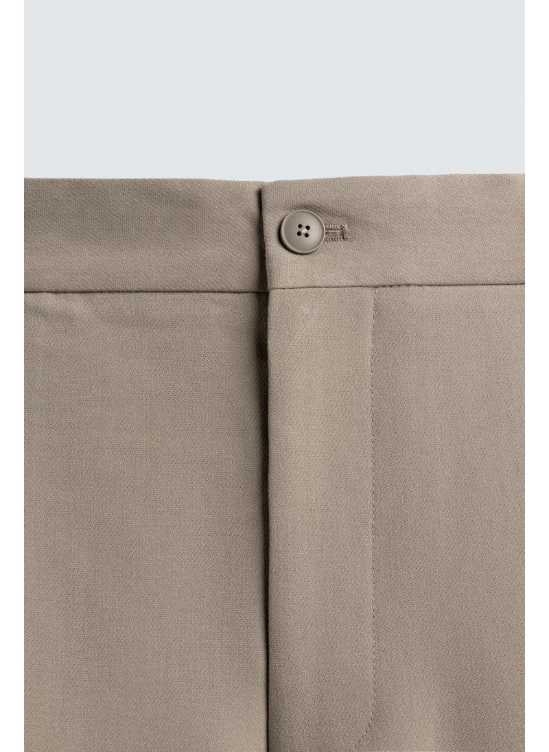 Брюки прямого кроя. Имеют пояс с деталями передних защипов. Передние карманы и задние накладные карманы. Застежка на молнию спереди и пуговицу...