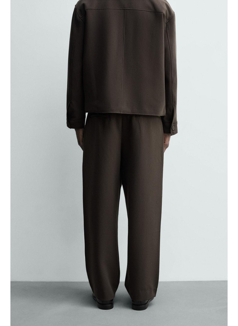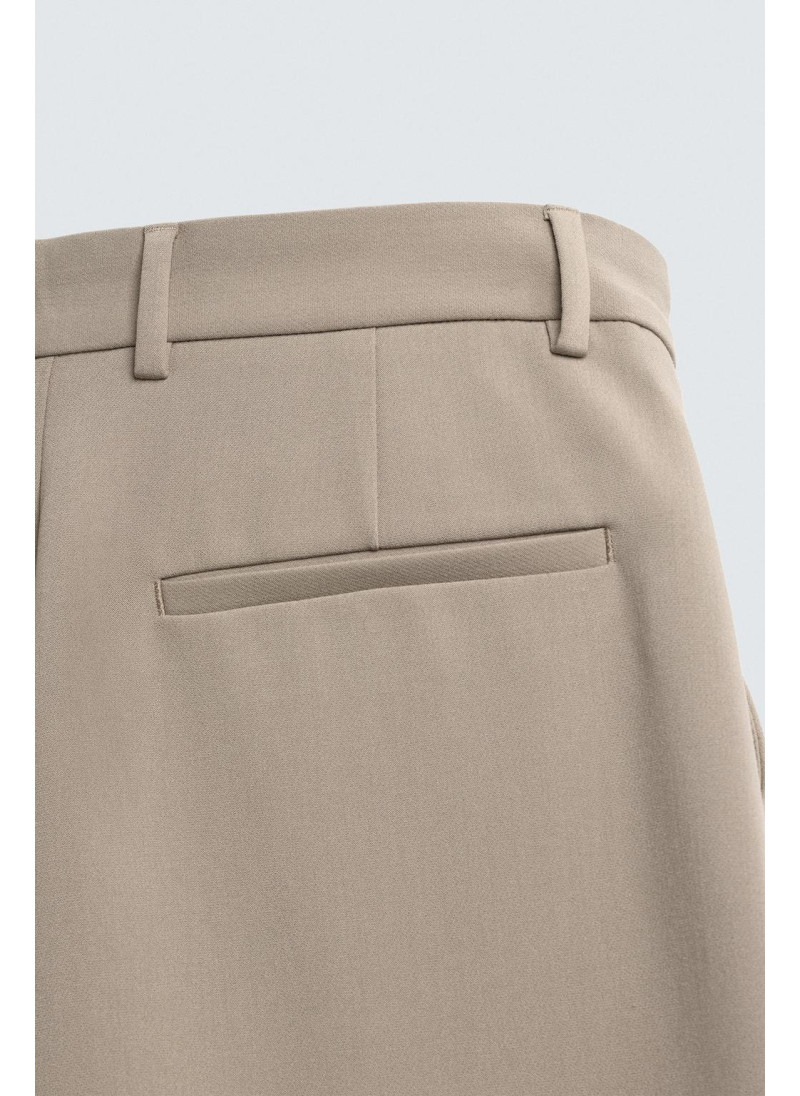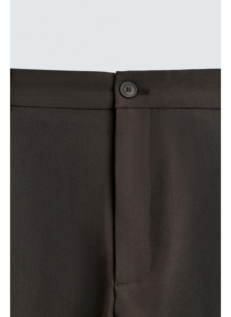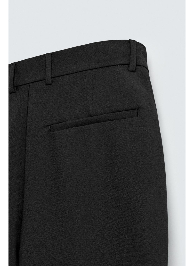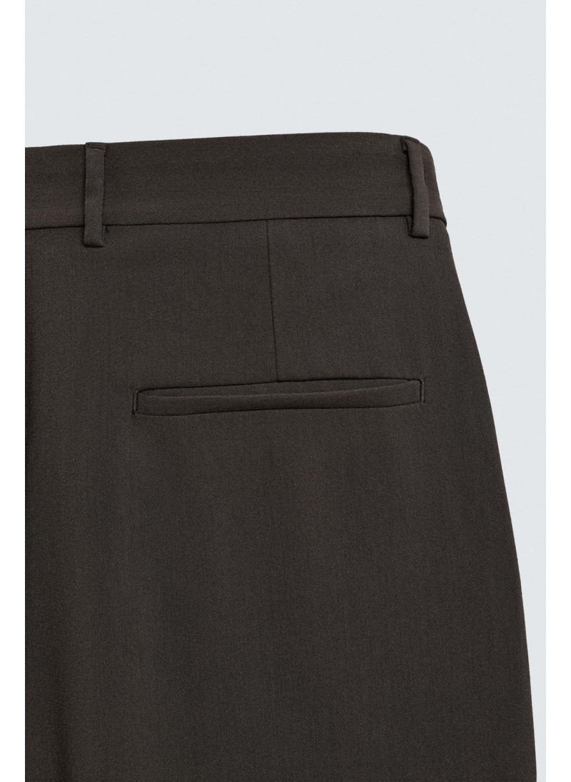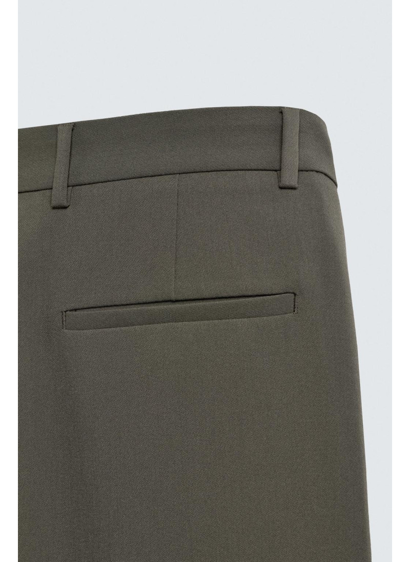 Брюки прямого кроя. Имеют пояс с деталями передних защипов. Передние карманы и задние накладные карманы. Застежка на молнию спереди и пуговицу.
