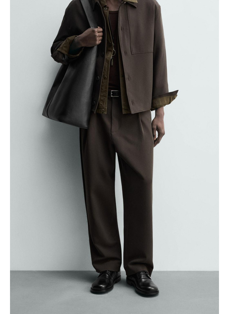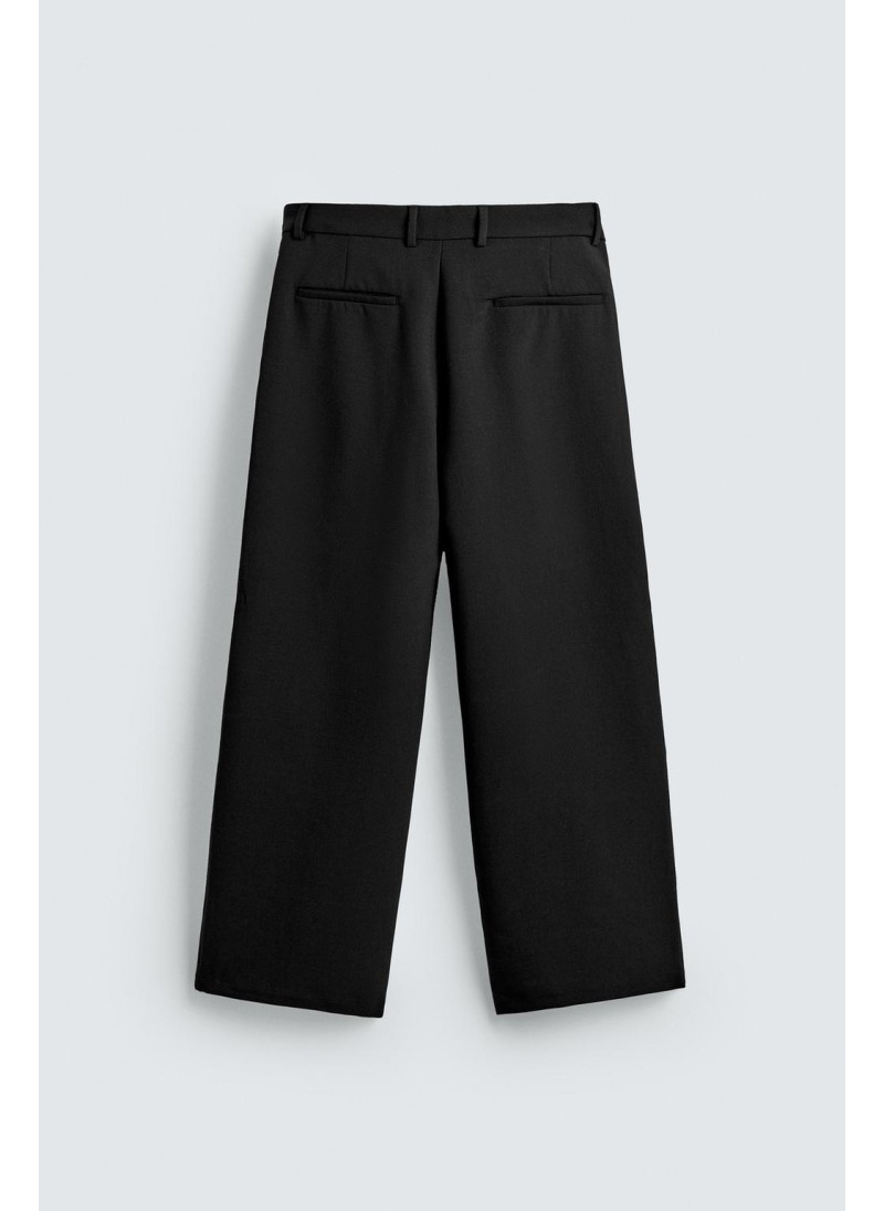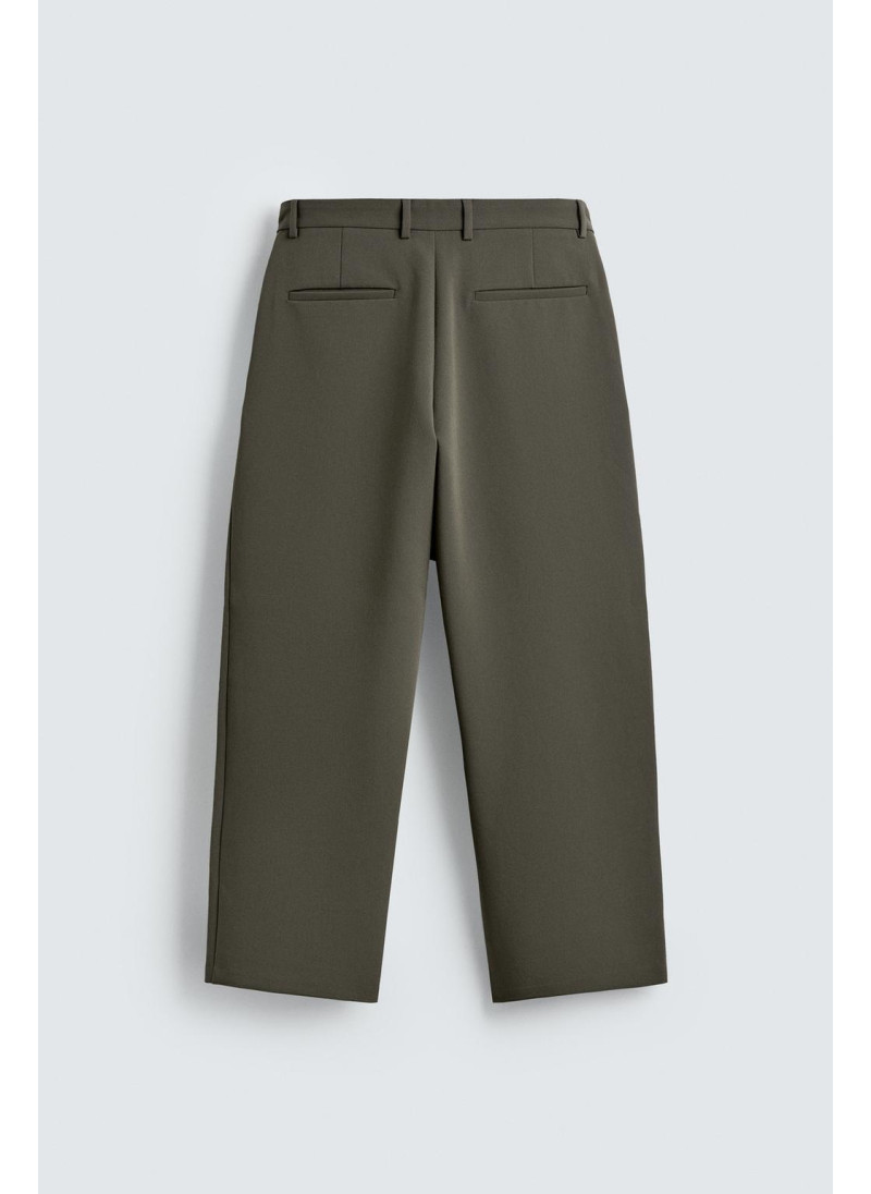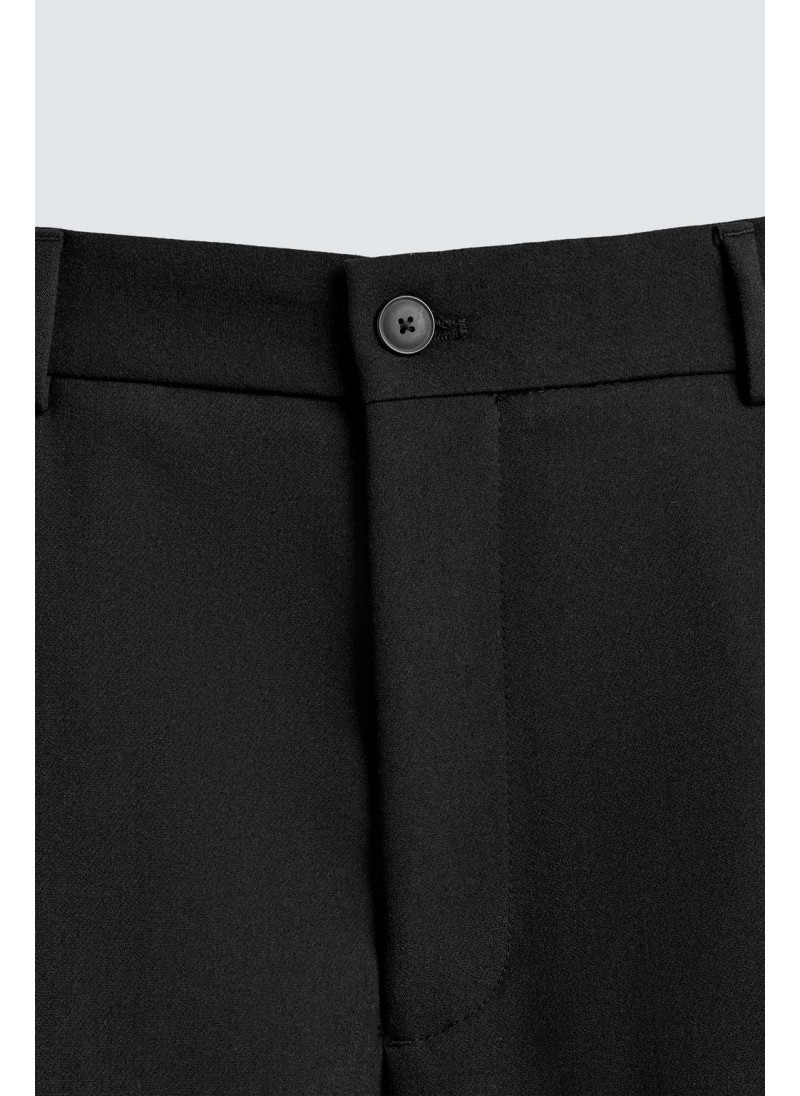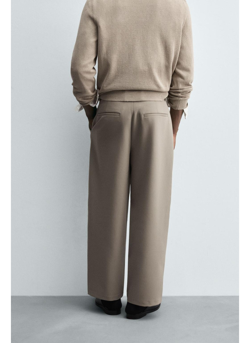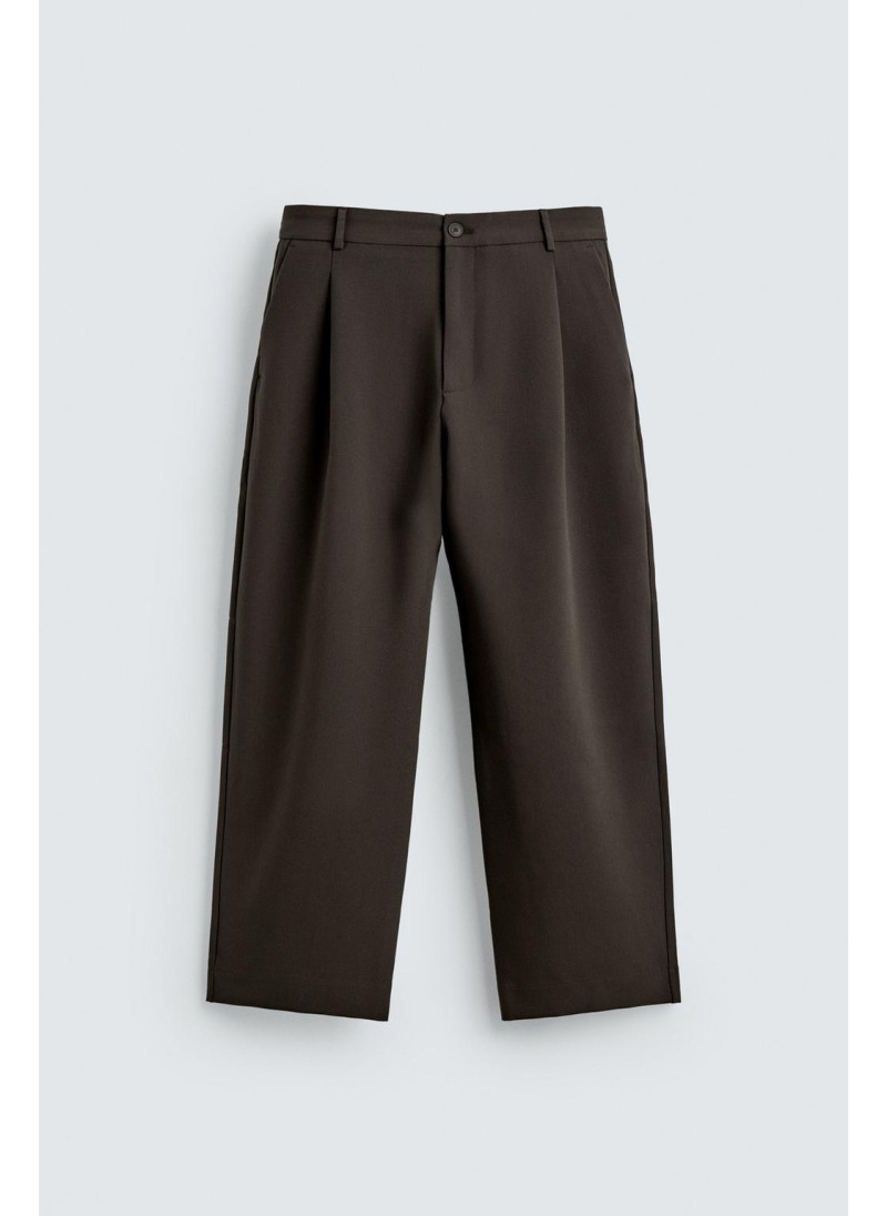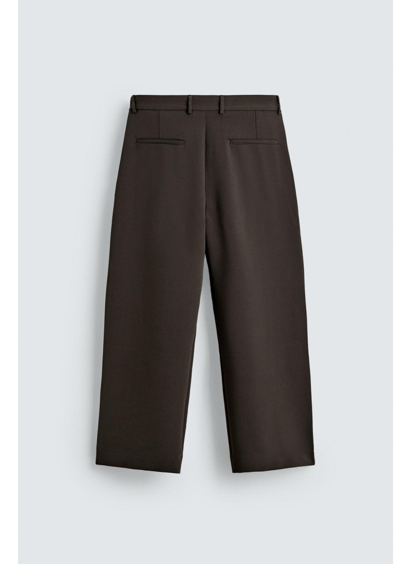 Брюки прямого кроя. Имеют пояс с деталями передних защипов. Передние карманы и задние накладные карманы. Застежка на молнию спереди и пуговицу.
