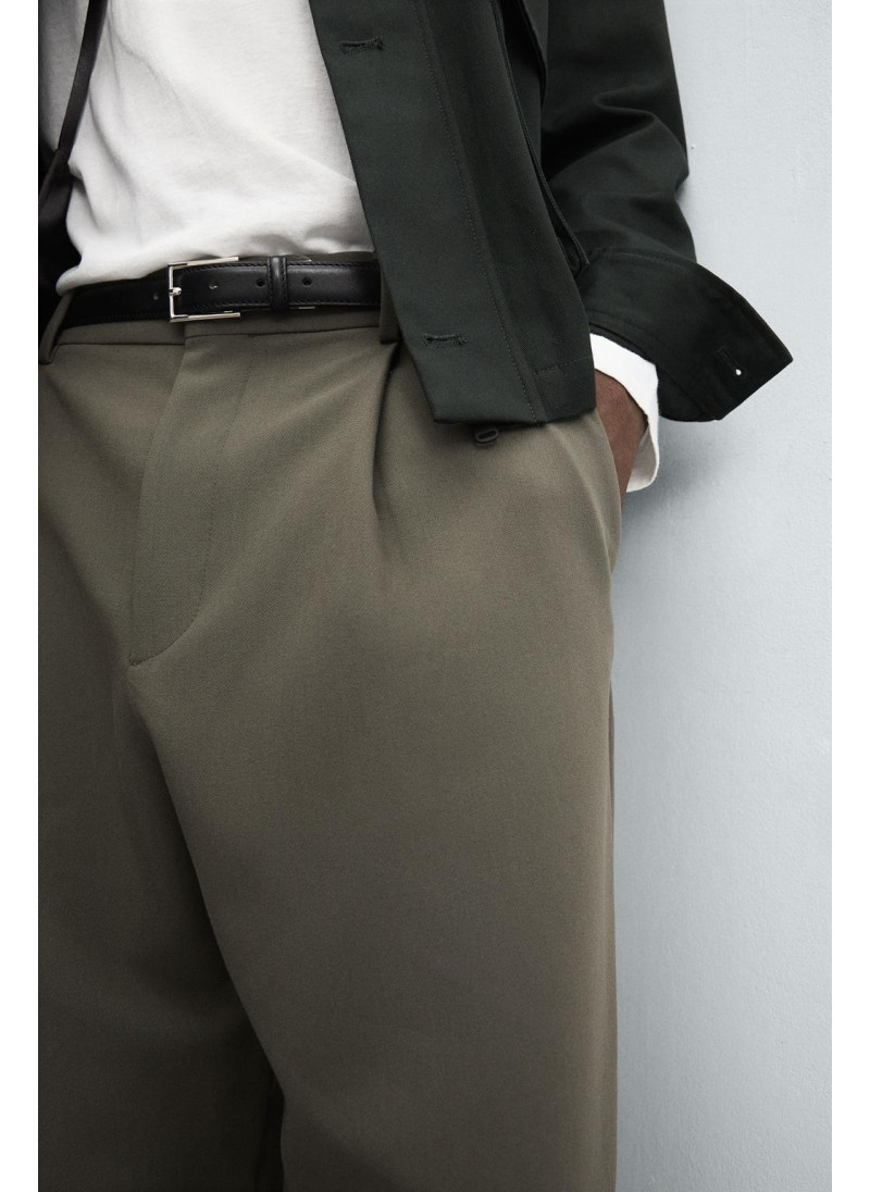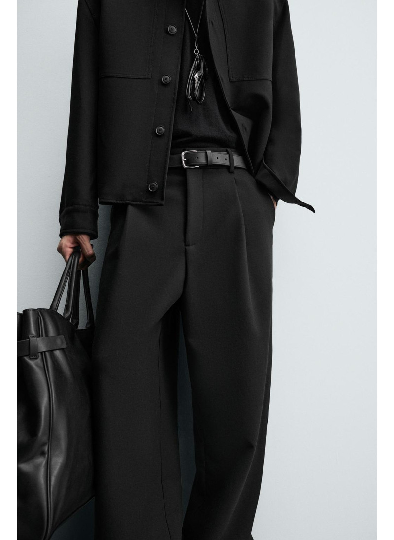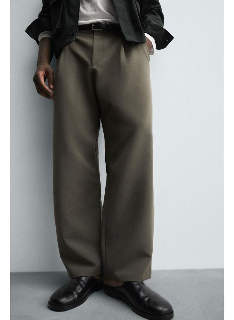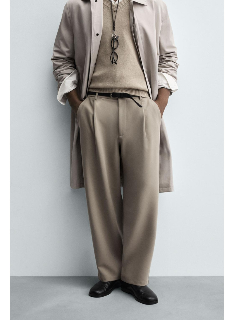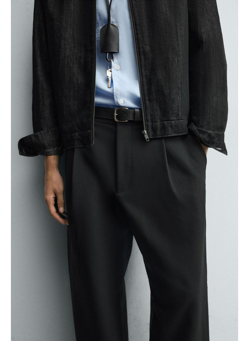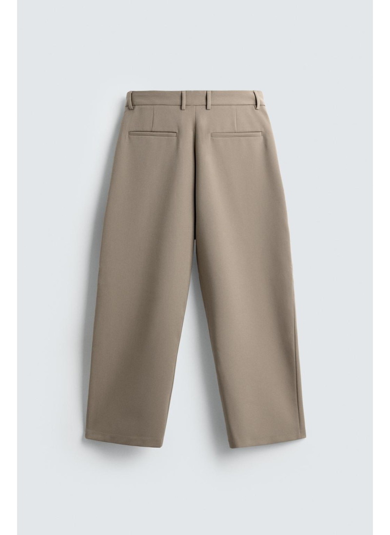 Брюки прямого кроя. Имеют пояс с деталями передних защипов. Передние карманы и задние накладные карманы. Застежка на молнию спереди и пуговицу.
