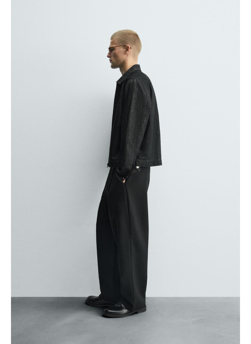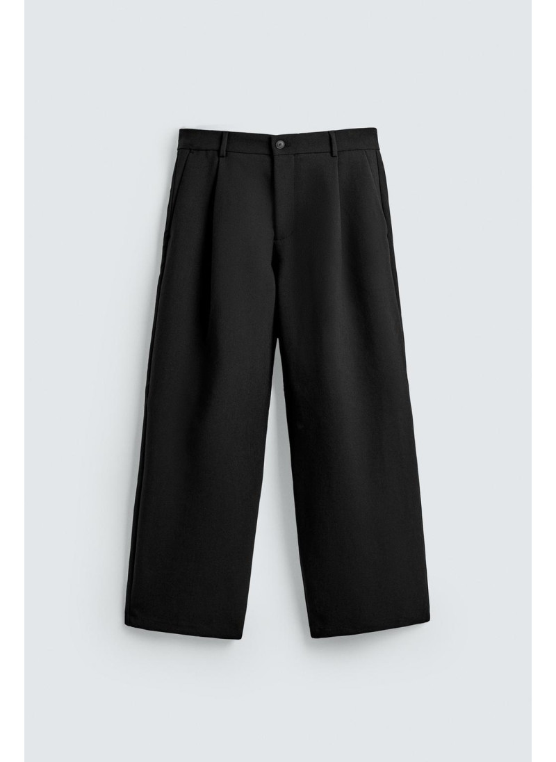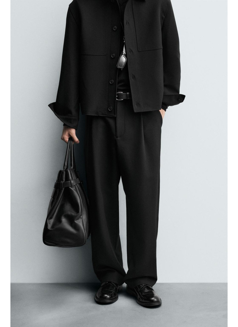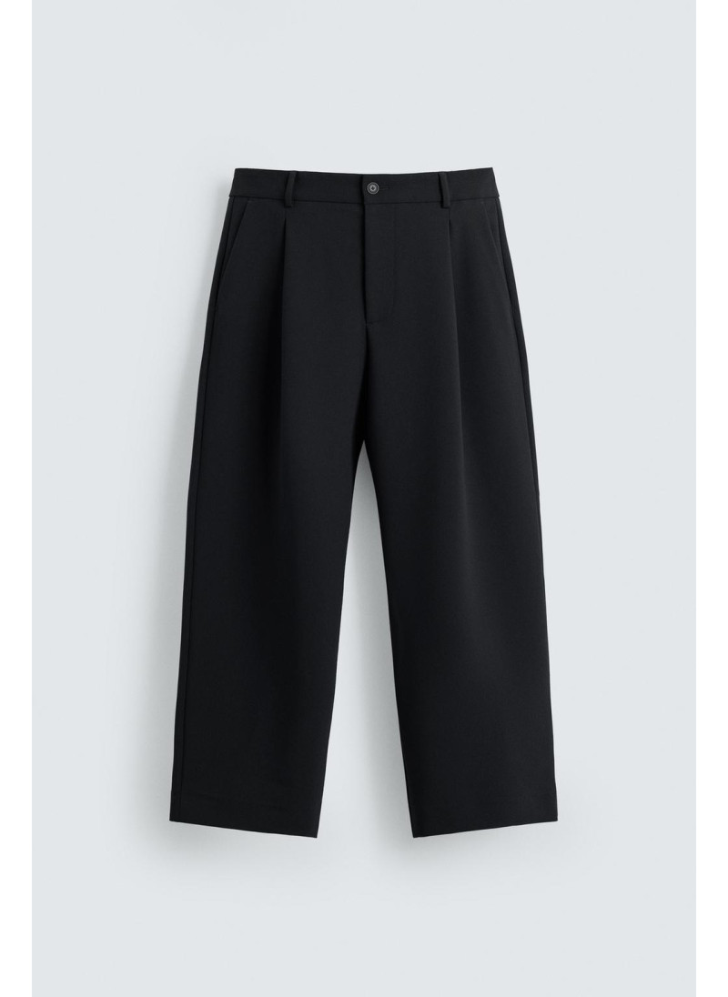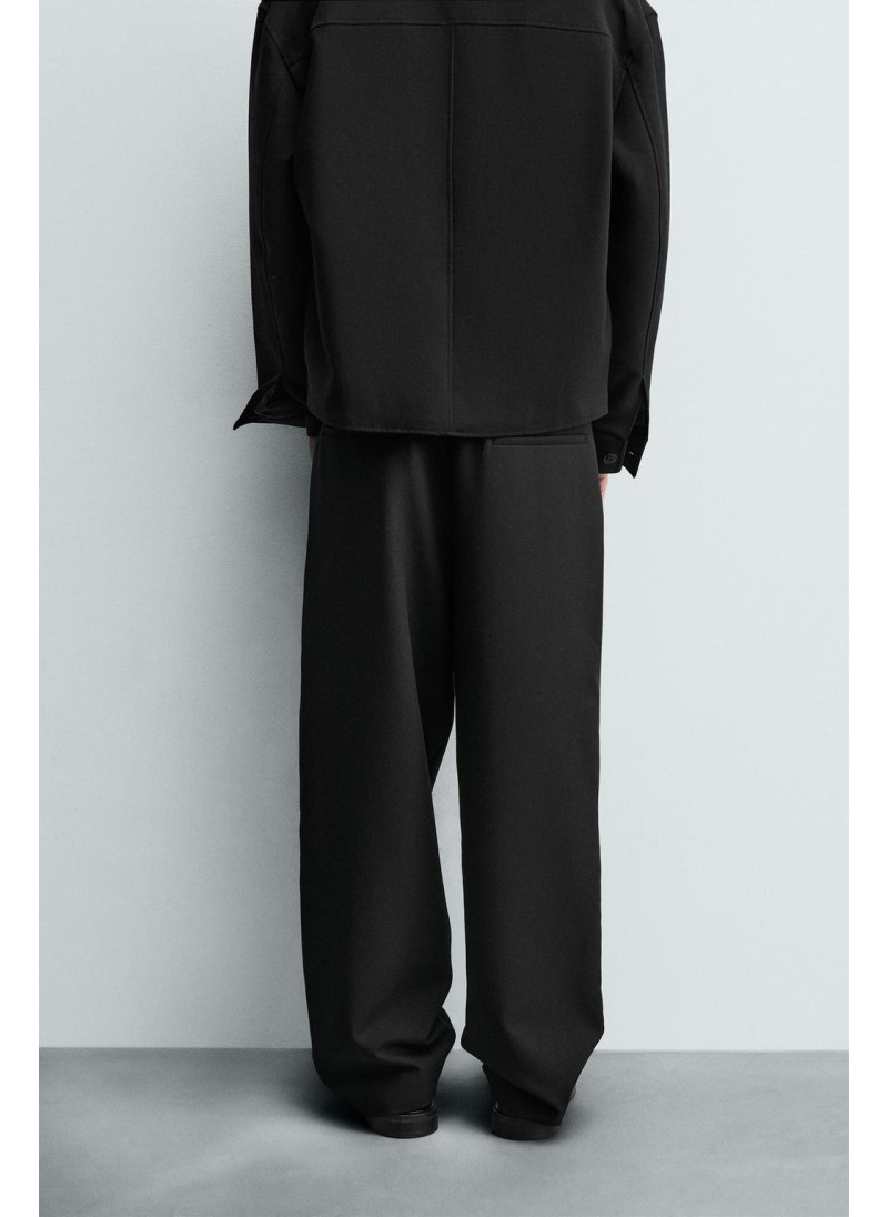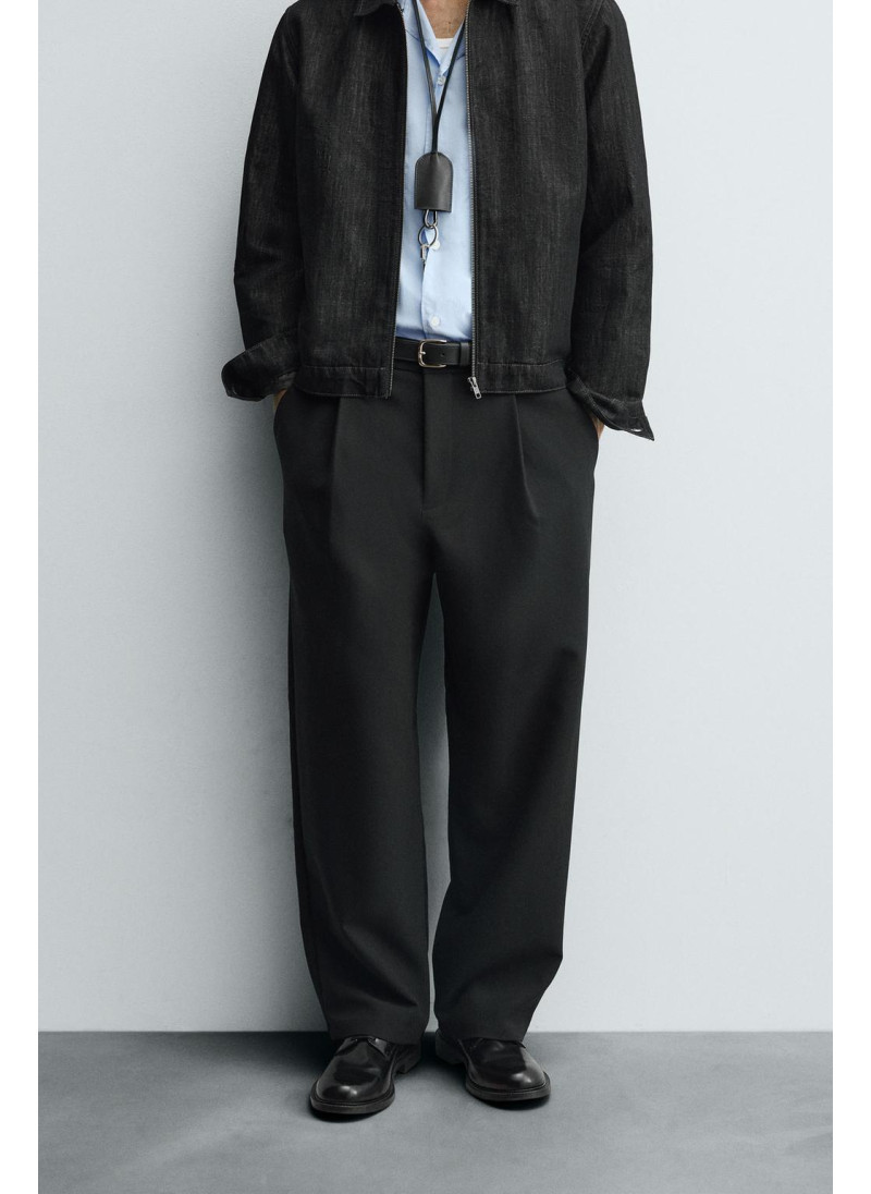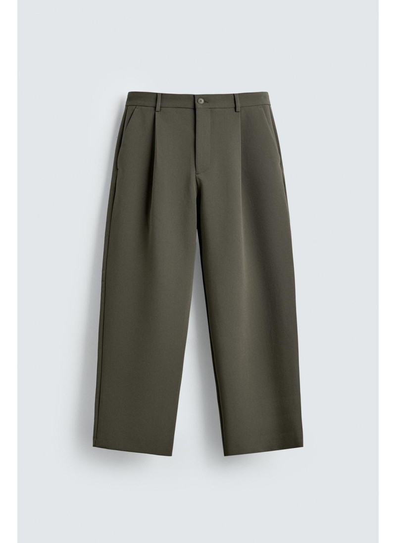 Брюки прямого кроя. Имеют пояс с деталями передних защипов. Передние карманы и задние накладные карманы. Застежка на молнию спереди и пуговицу.