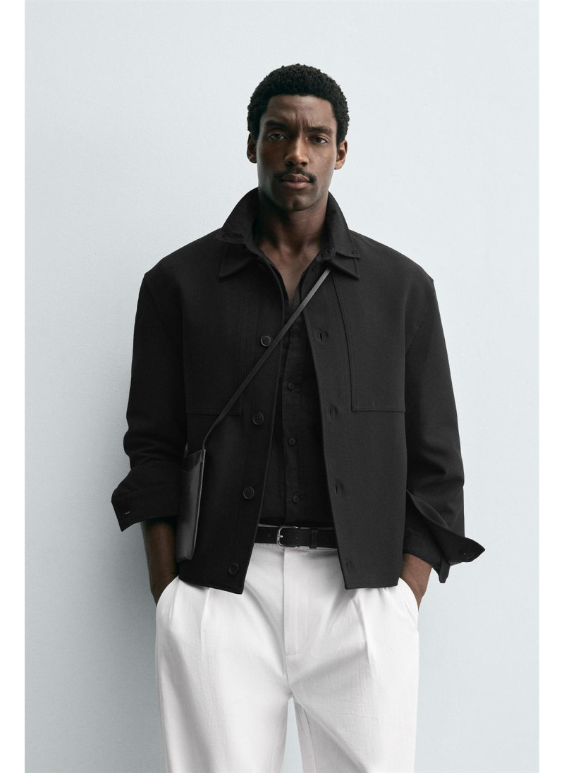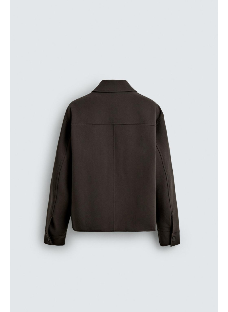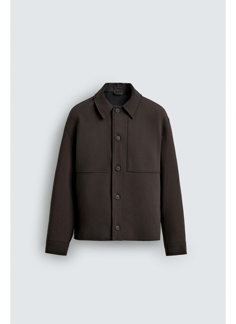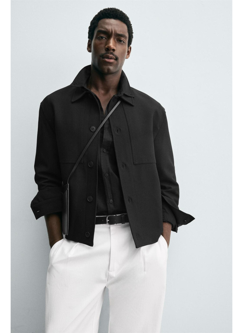 Рубашка прямого кроя из плотной ткани. Имеет воротник лацкан и длинные рукава с пуговицами на манжетах. Боковые карманы. Застежка на пуговицы.