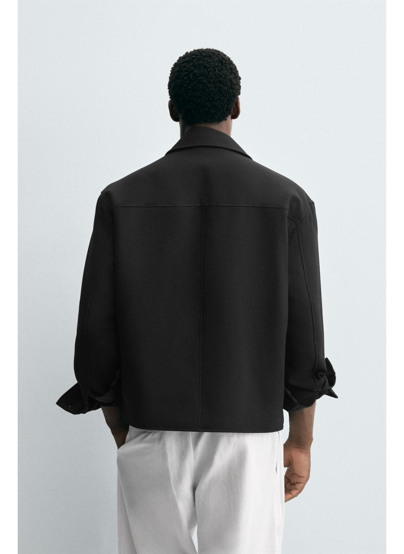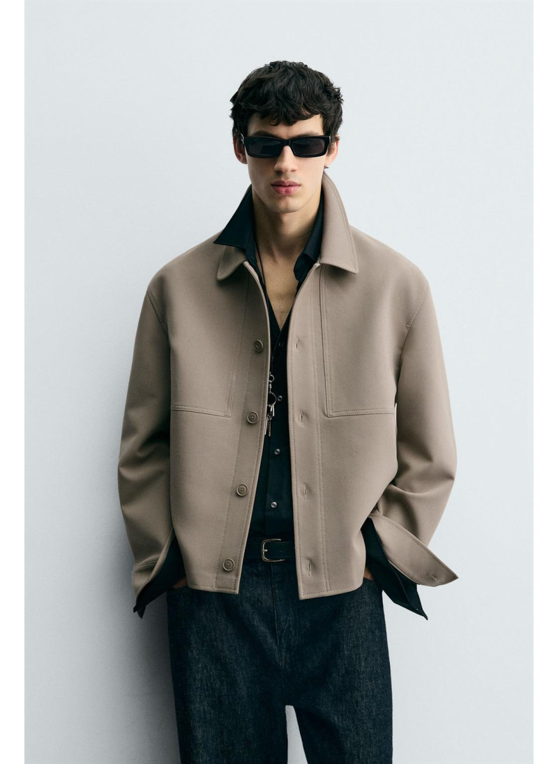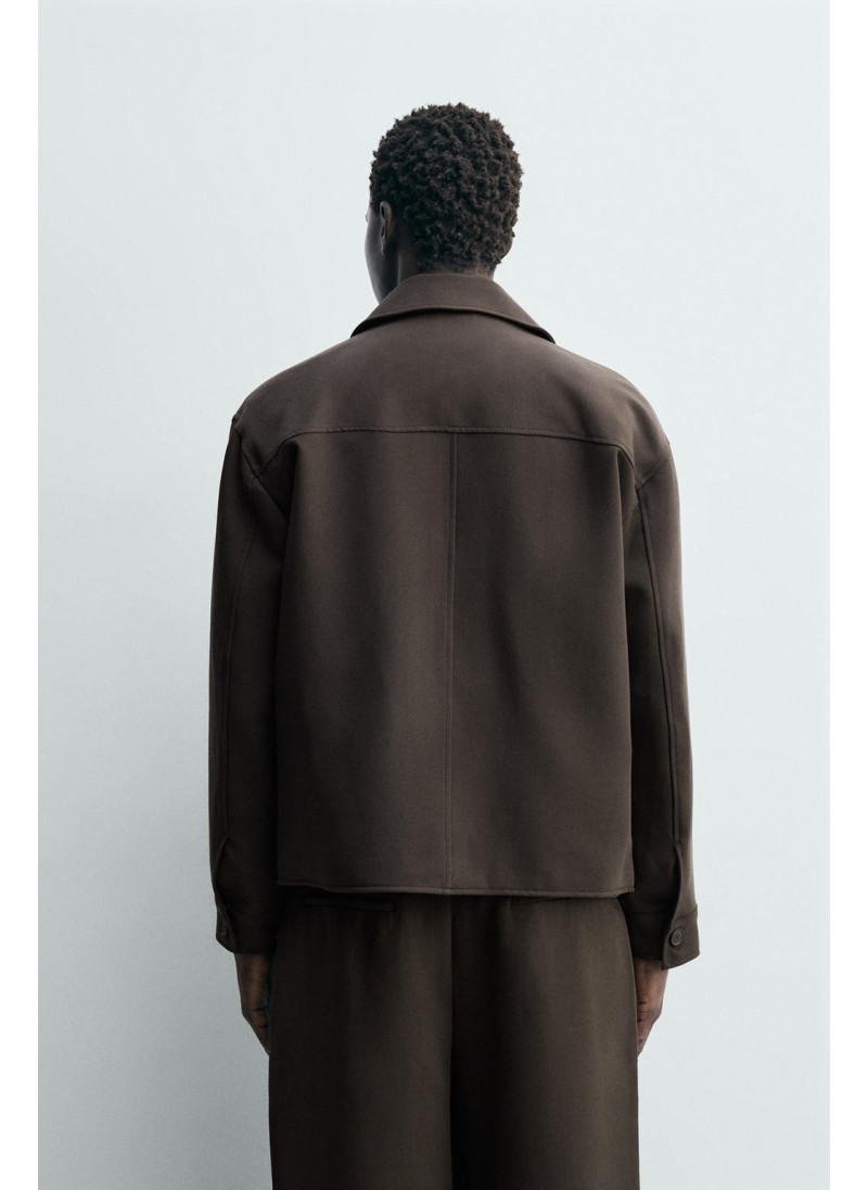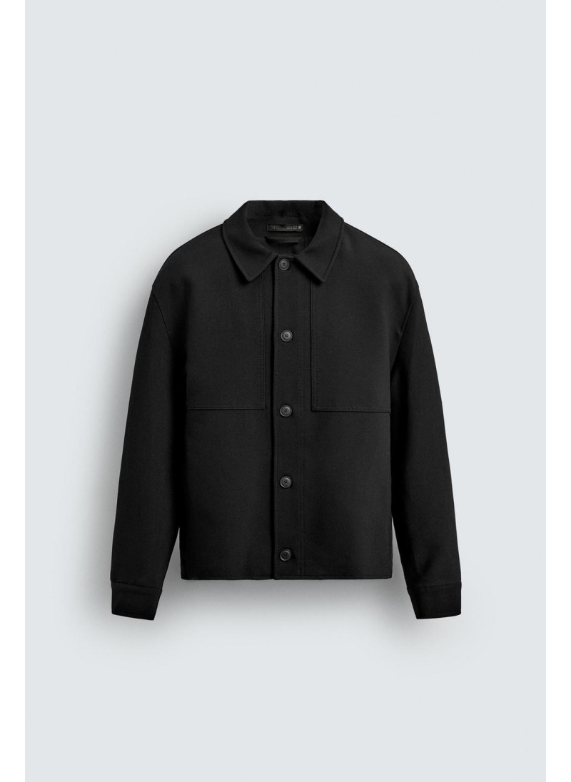 Рубашка прямого кроя из плотной ткани. Имеет воротник лацкан и длинные рукава с пуговицами на манжетах. Боковые карманы. Застежка на пуговицы.