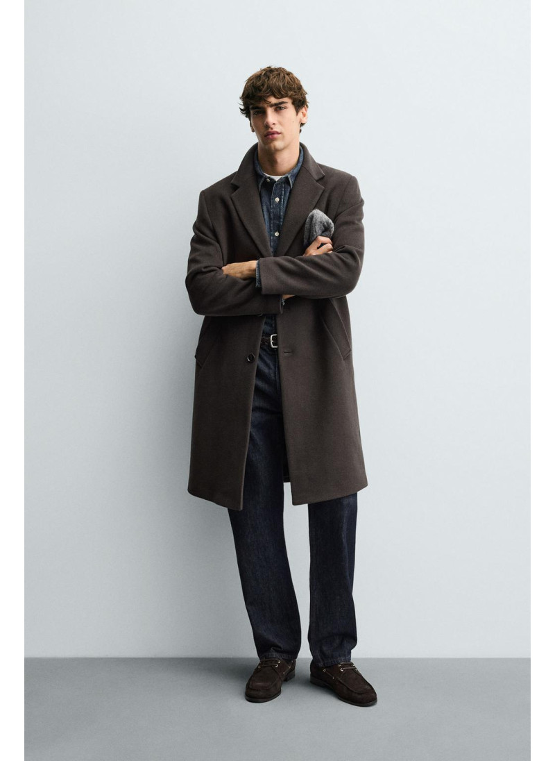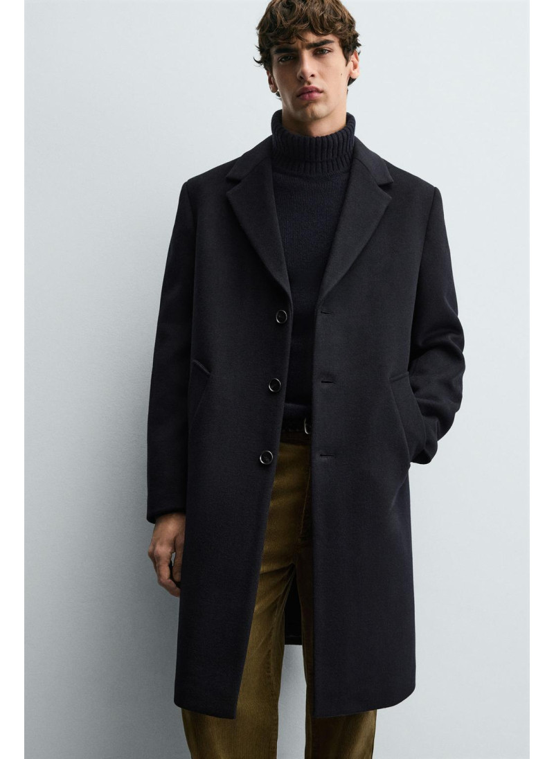 Пальто с крой Regular Fit из смесовой ткани. Имеет воротник с лацканами и длинные рукава. Карманы с листочкой на бедрах и внутренний карман. Низ с разрезом по центру на спинке. Застежка спереди на пуговицу.