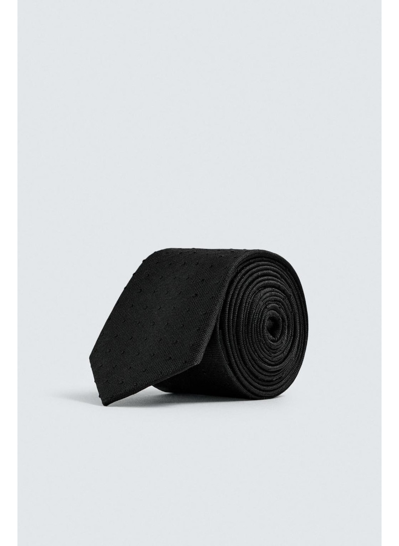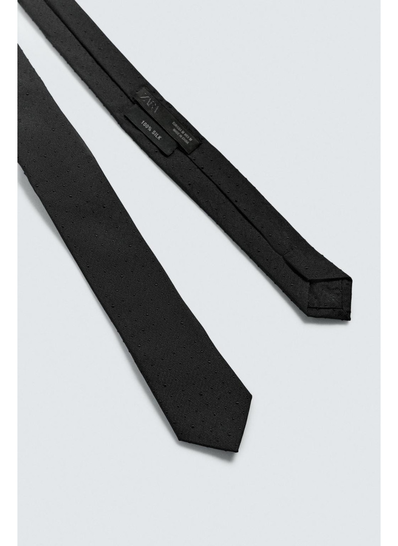 Шелковый галстук с жаккардовым узором от Zara. Цвет: Черный.