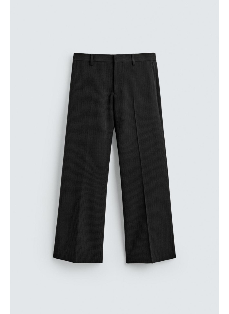 Брюки свободного кроя из шерстяной смеси. Имеют боковые карманы и задние накладные карманы. Молния и скрытая застежка на металлические крючки...