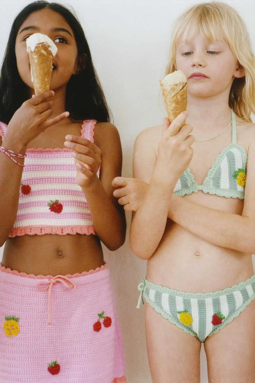 6-14 ЛЕТ/ ТОП И ПАРЕО С ВЯЗАНОЙ КРЮЧКОМ ФРУКТОВОЙ И ПОЛОСАТОЙ ТЕМАТИКОЙ