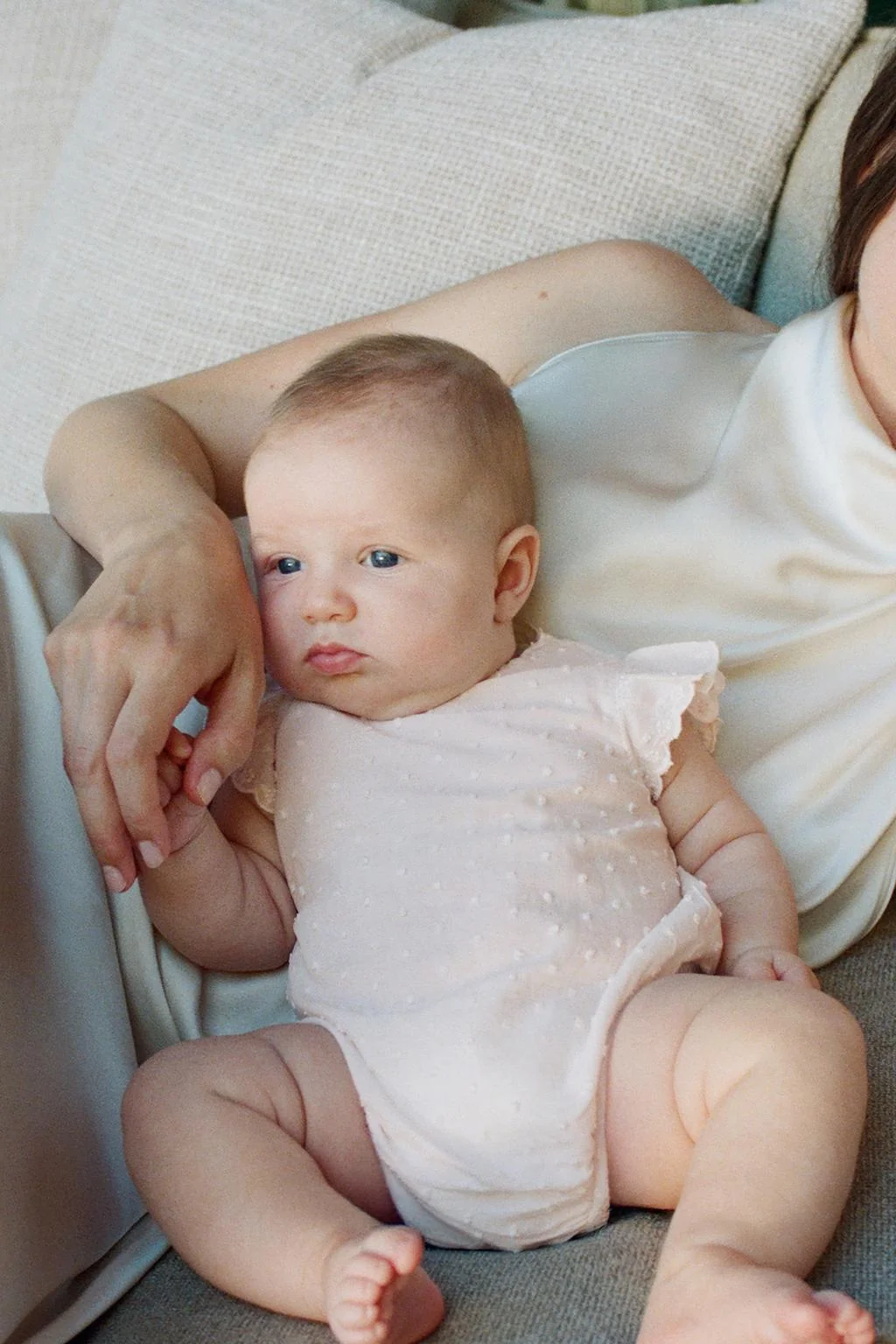 Ромпер из сетчатого материала с точечным принтом и вышивкой