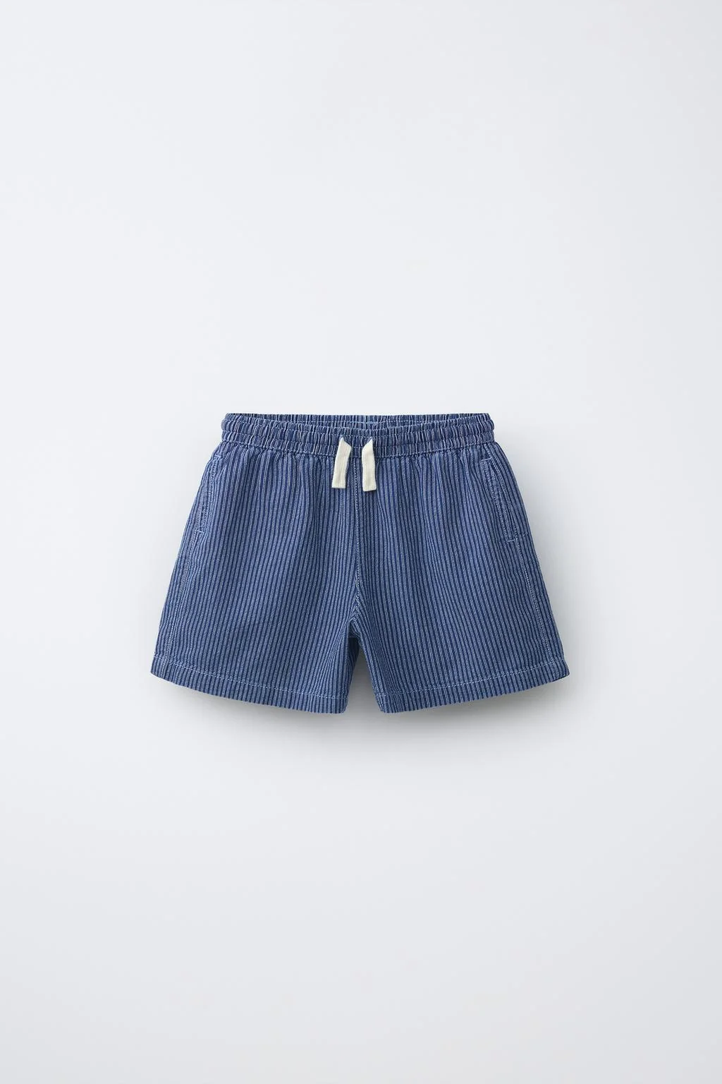 STRIPED LOOSE-FITTING DENIM BERMUDA SHORTS
