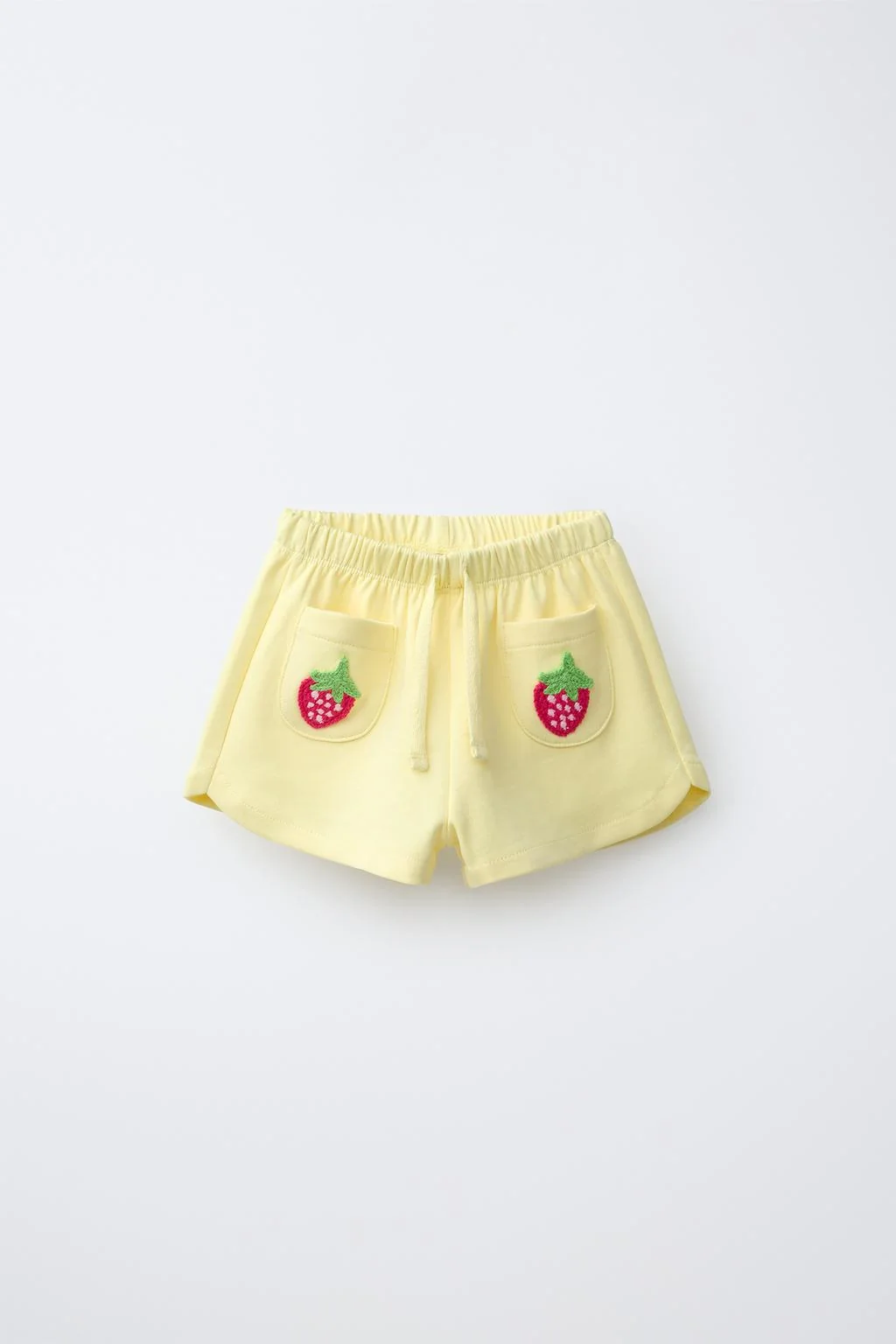 INTERLOCK BERMUDA SHORTS WITH CROCHET FRUIT