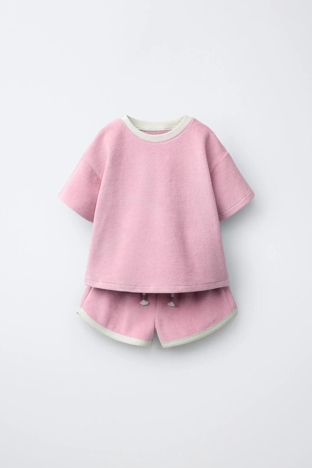 PLAIN TOWELLING T-SHIRT AND BERMUDA SHORTS SET