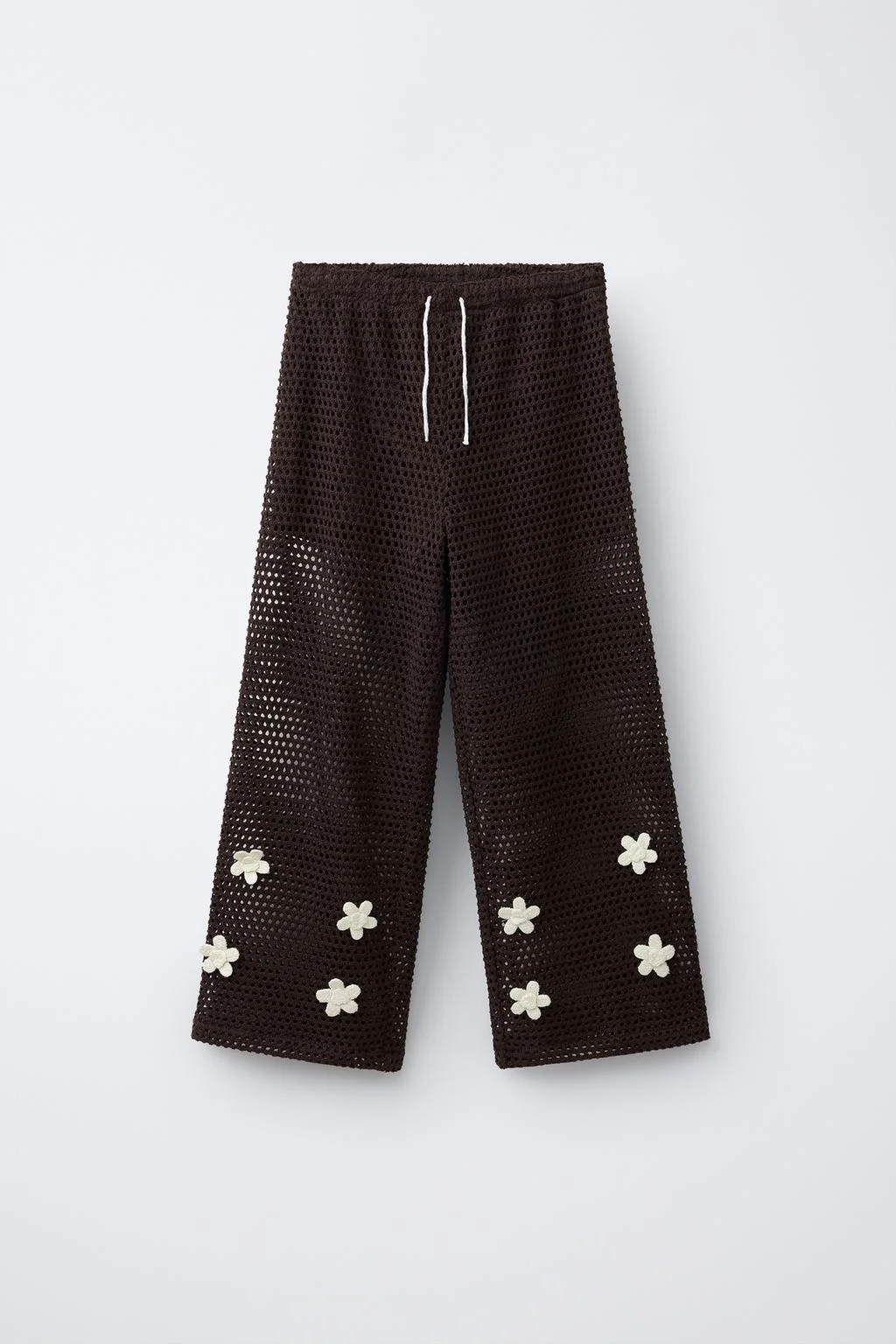 WIDE-LEG CROCHET FLORAL TROUSERS