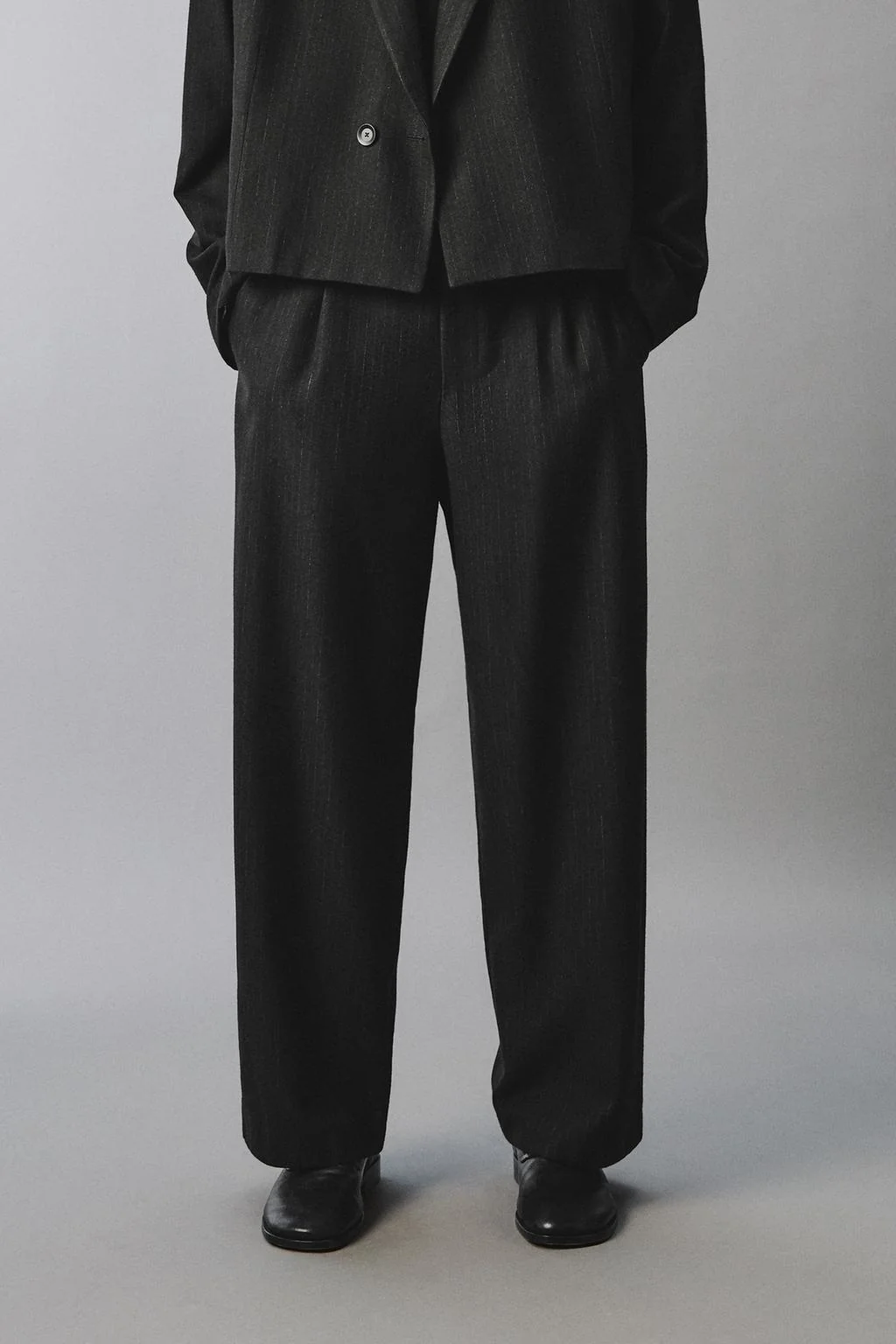 Брюки костюма в полоску со складками