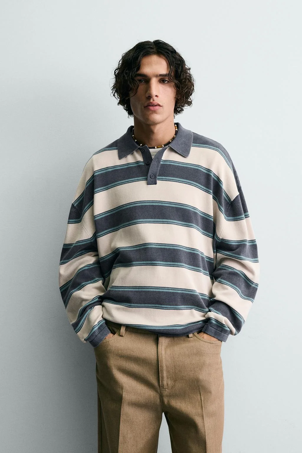 Полосатое поло свободного кроя из трикотажа