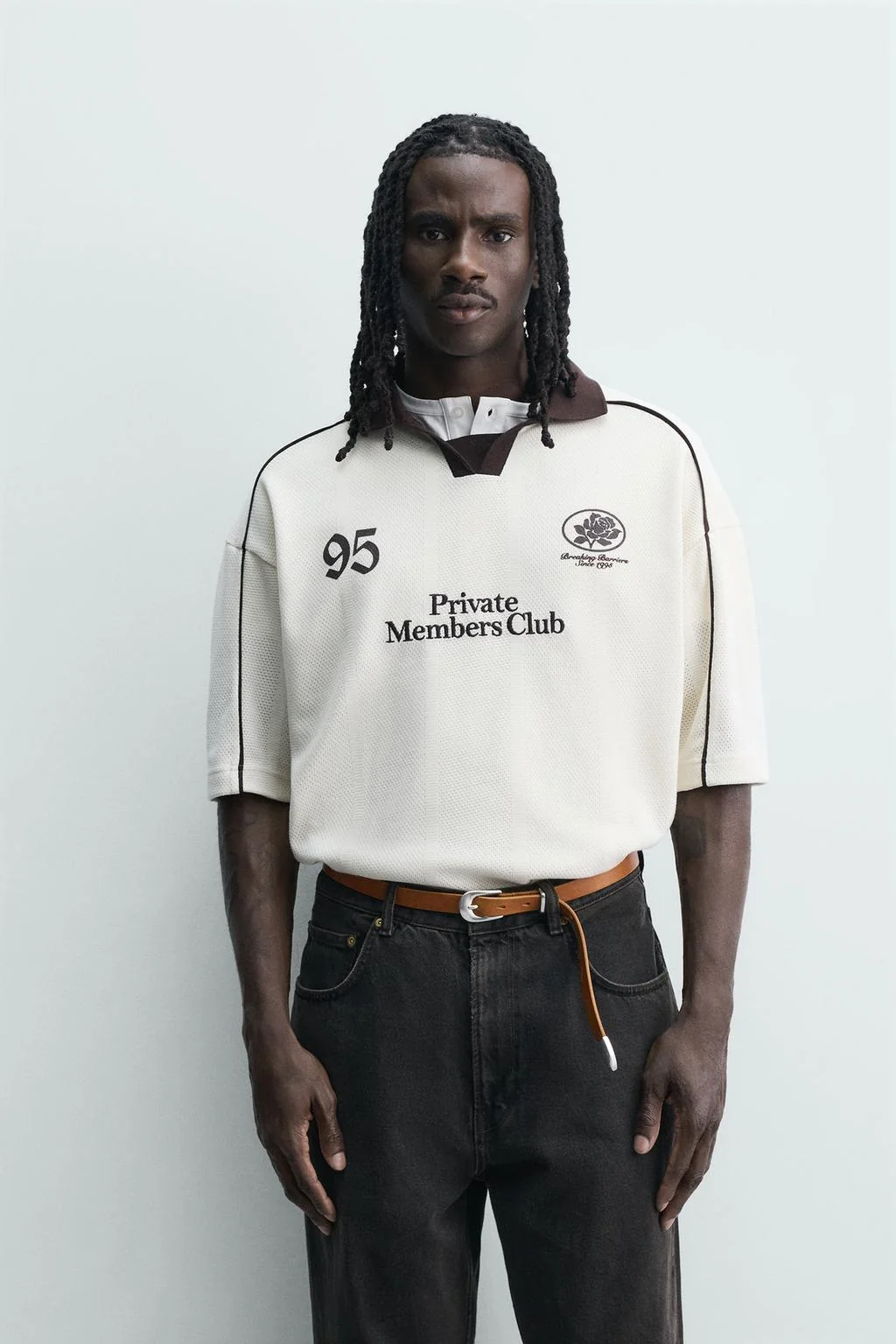CONTRAST EMBROIDERED RETRO FOOTBALL POLO SHIRT