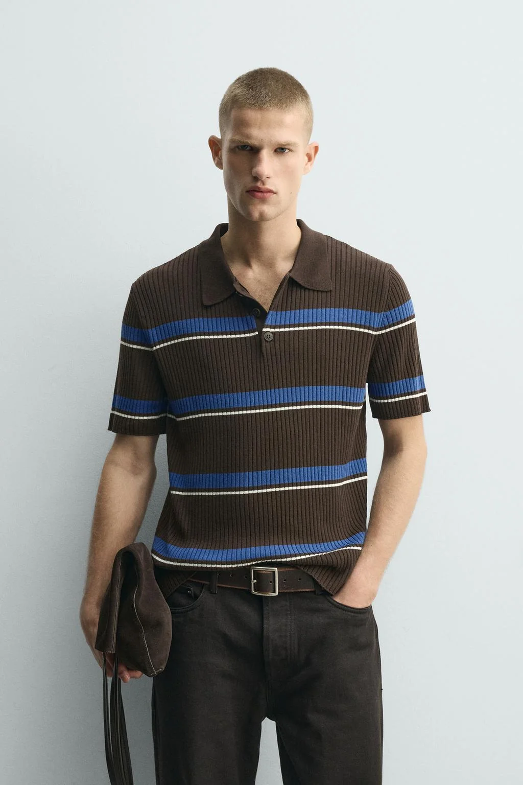 ПОЛО С ВЯЗАНЫМ ЖАККАРДОВЫМ РИСУНКОМ В ПОЛОСКУ — Zara — ЗараТут