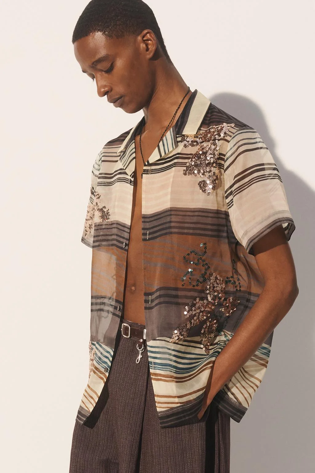 Рубашка из 100% шёлкового органза с пайетками