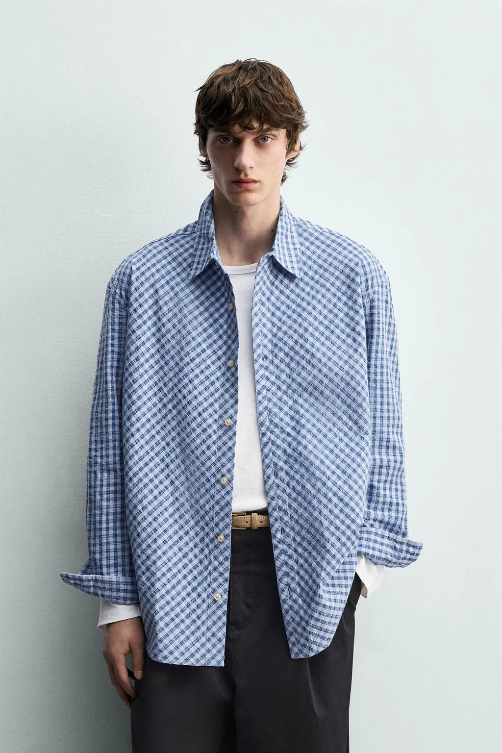 Рубашка свободного кроя в клетку с текстурой — Zara — ЗараТут
