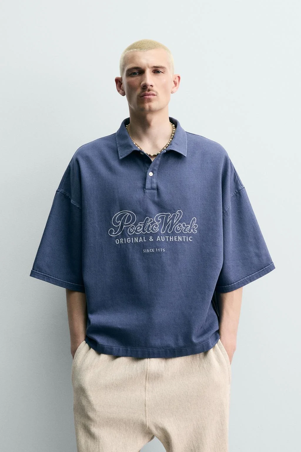 BOXY FIT POLO SHIRT WITH EMBROIDERED TEXT