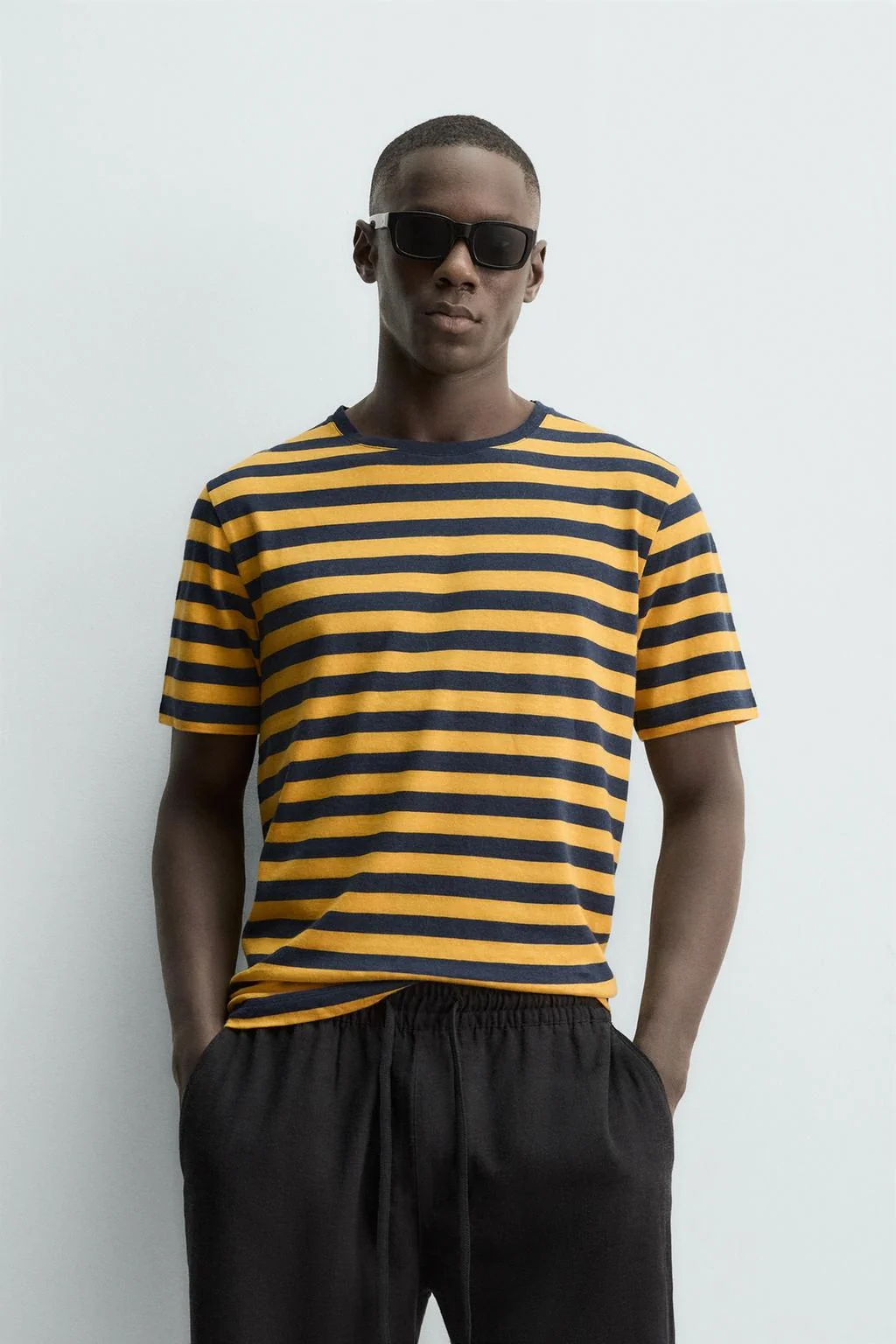Полосатая льняно-хлопковая футболка — Zara — ЗараТут