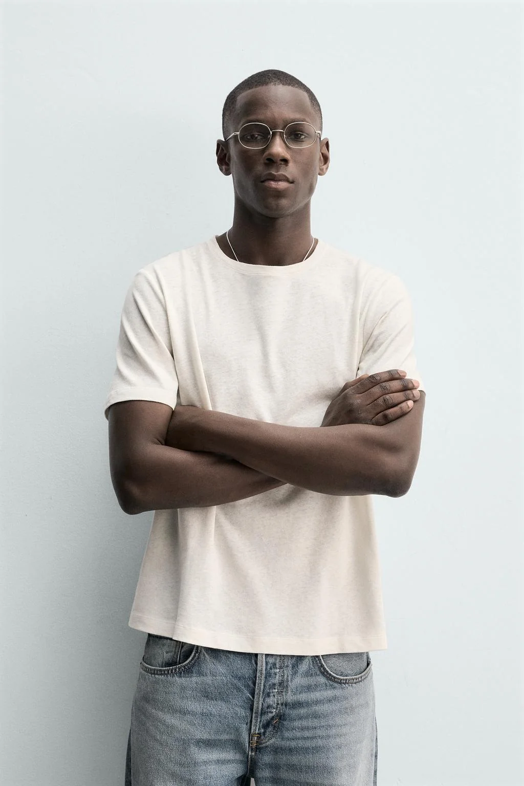 Футболка из льняно-хлопковой ткани — Zara — ЗараТут