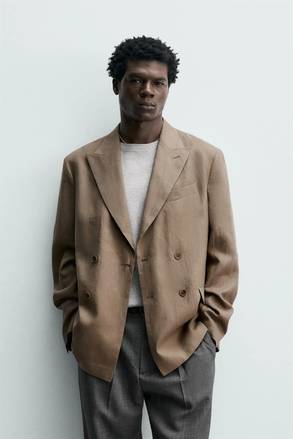 DOUBLE-BREASTED 100% LINEN SUIT BLAZER