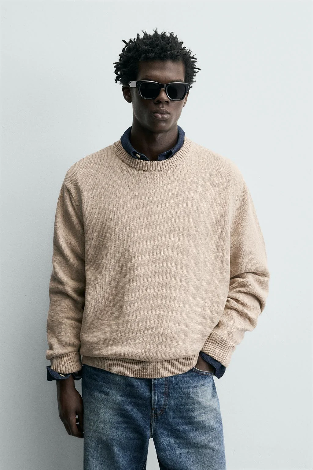 Трикотажный хлопковый свитер с текстурой — Zara — ЗараТут